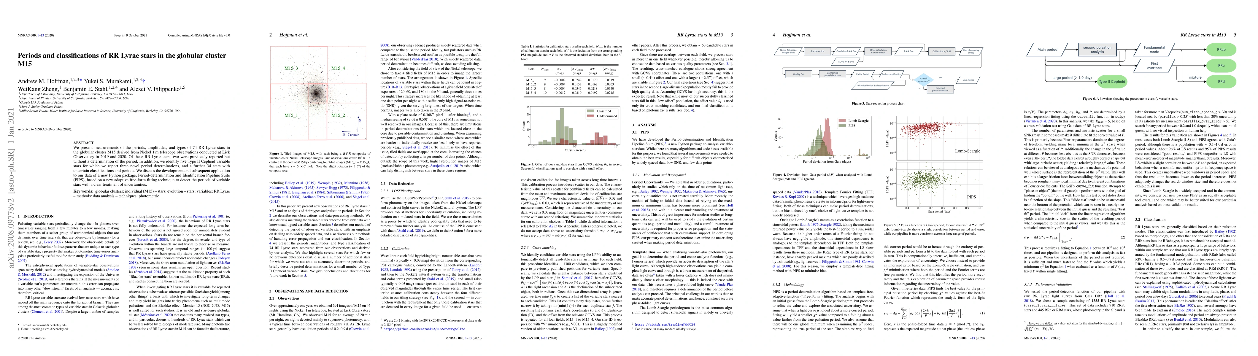 This study measures periods, amplitudes, and types of 74 RR Lyrae stars in M15 using Nickel 1 m telescope observations, identifying five Type II Cepheids and 34 uncertain stars. A new Python package, PIPS, was developed for adaptive period determination with uncertainty treatment.