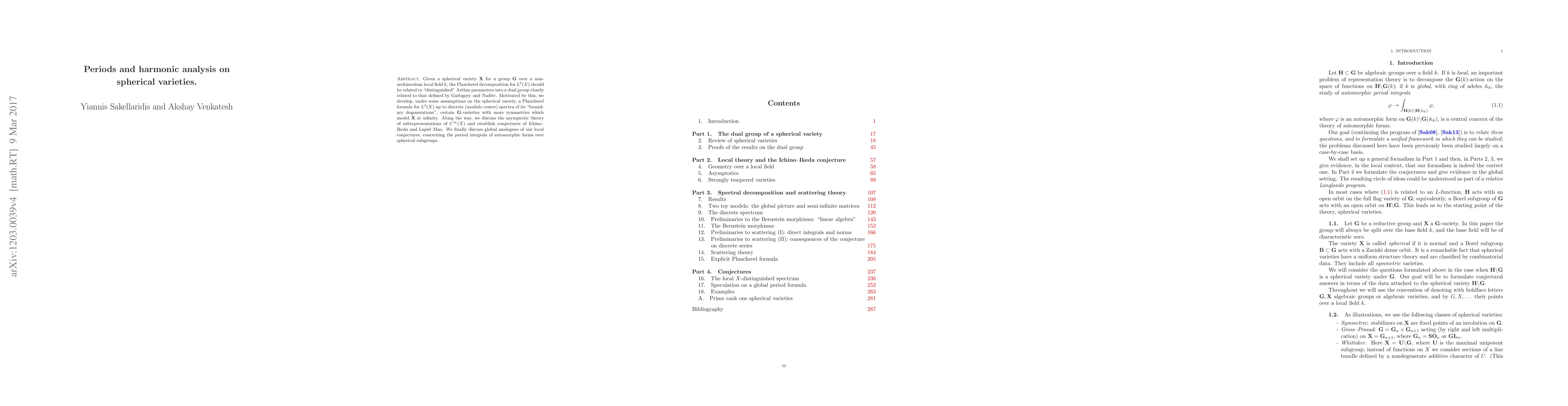 The work presents a Plancherel formula for spherical varieties, incorporating distinguished Arthur parameters and addressing the asymptotic theory of subrepresentations, offering new insights into harmonic analysis on these geometric objects.