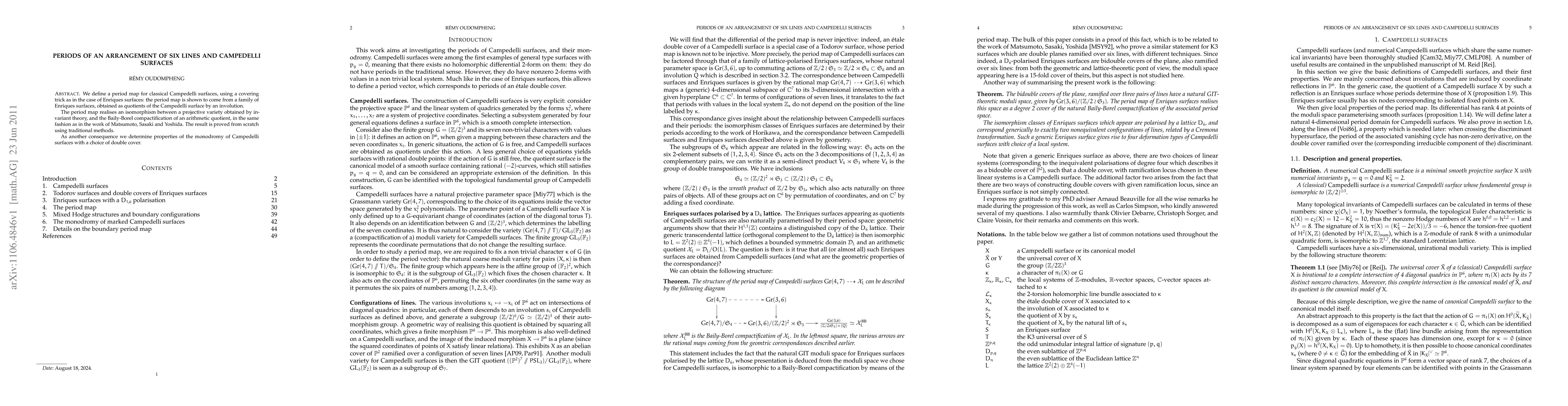 We define a period map for classical Campedelli surfaces, using a covering trick as in the case of Enriques surfaces: the period map is shown to come from a family of Enriques surfaces, obtained as quotients of the Campedelli surface by an involution. The period map realises an isomorphism between a projective variety obtained by invariant theory, and the Baily-Borel compactification of an arithmetic quotient, in the same fashion as in the work of Matsumoto, Sasaki and Yoshida. The result is proved from scratch using traditional methods. As another consequence we determine properties of the monodromy of Campedelli surfaces with a choice of double cover.