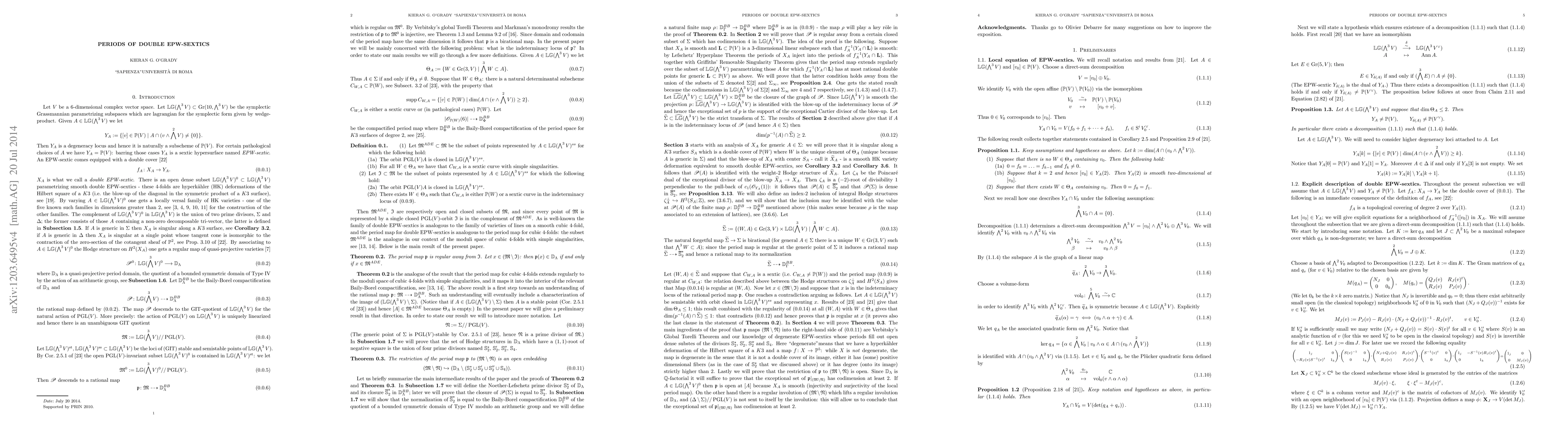 The research employs algebraic geometry techniques, specifically analyzing the indeterminacy locus of the period map for double EPW-sextics, which are parameterized by lagrangian subspaces of the third wedge-product of a 6-dimensional complex vector space.