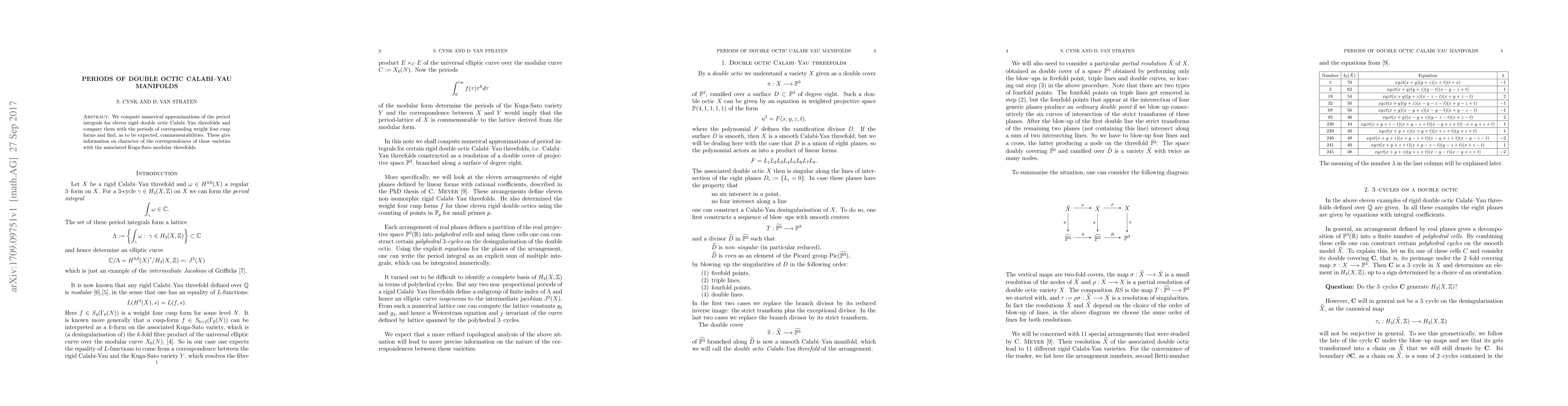 The study numerically approximates period integrals for eleven rigid double octic Calabi-Yau threefolds, revealing commensurabilities with corresponding weight two cusp forms that inform on their relationships with associated Kuga-Sato modular threefolds.