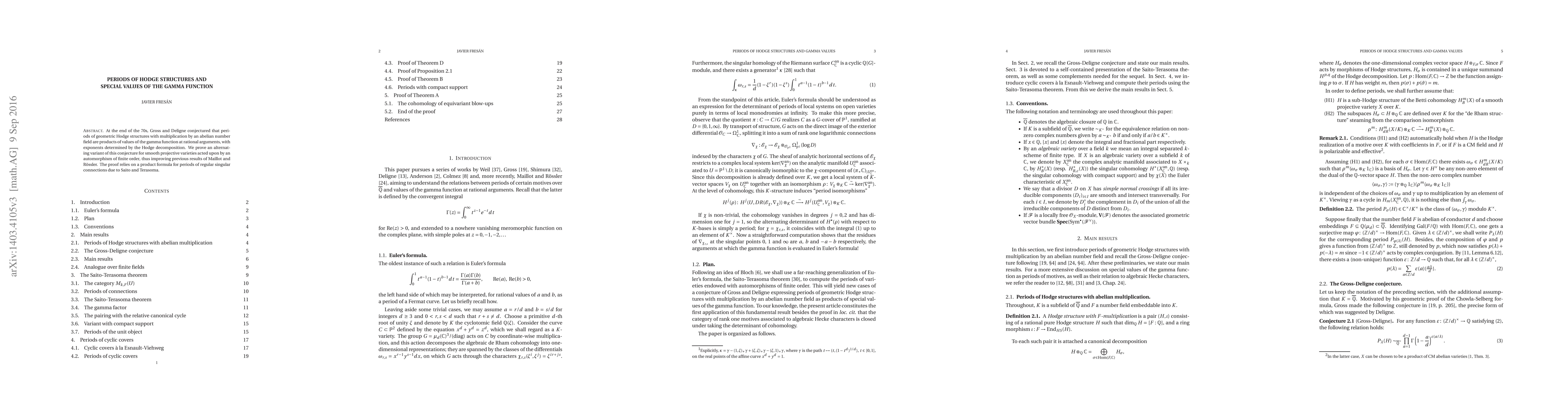 This paper proves an alternating variant of Gross and Deligne's conjecture on periods of Hodge structures, showing they are products of gamma function values, for varieties with automorphisms of finite order. The proof utilizes a product formula for periods of regular singular connections.