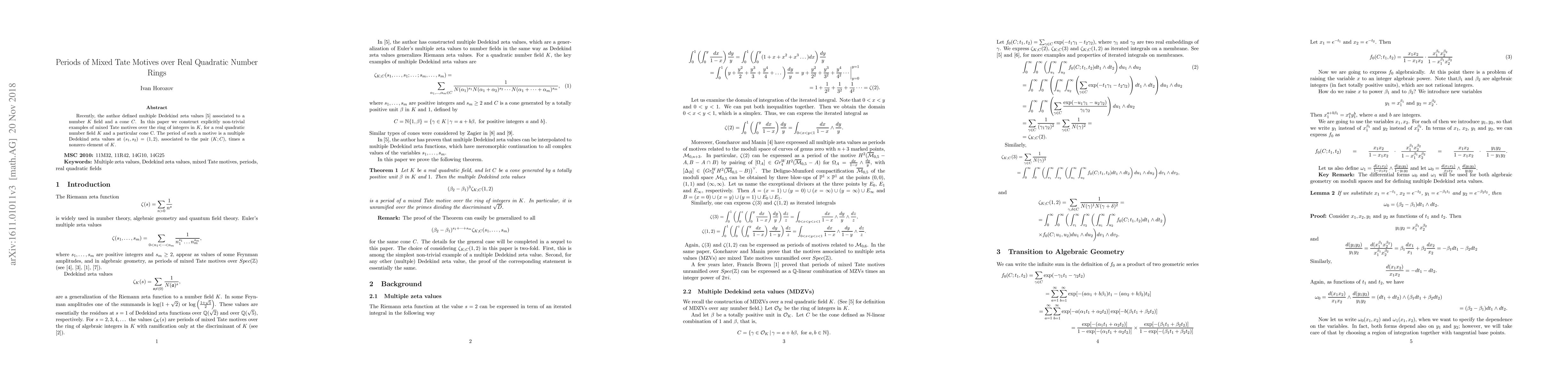 This paper constructs non-trivial mixed Tate motives over the integers of a real quadratic number field $K$, with periods expressed as multiple Dedekind zeta values at $(s_1,s_2)=(1,2)$ associated with the pair $(K;C)$, multiplied by a nonzero element of $K$.