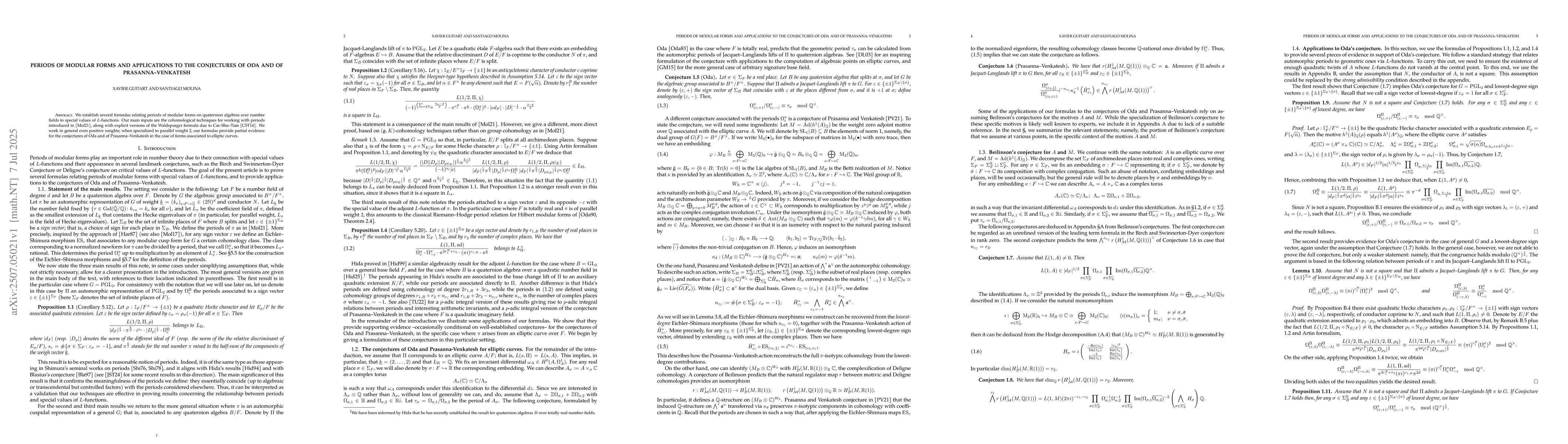 We establish several formulas relating periods of modular forms on quaternion algebras over number fields to special values of L-functions. Our main inputs are the cohomological techniques for working with periods introduced in [Mol21], along with explicit versions of the Waldspurger formula due to Cai-Shu-Tian. We work in general even positive weights; when specialized to parallel weight 2, our formulas provide partial evidence for the conjectures of Oda and of Prasanna-Venkatesh in the case of forms associated to elliptic curves.