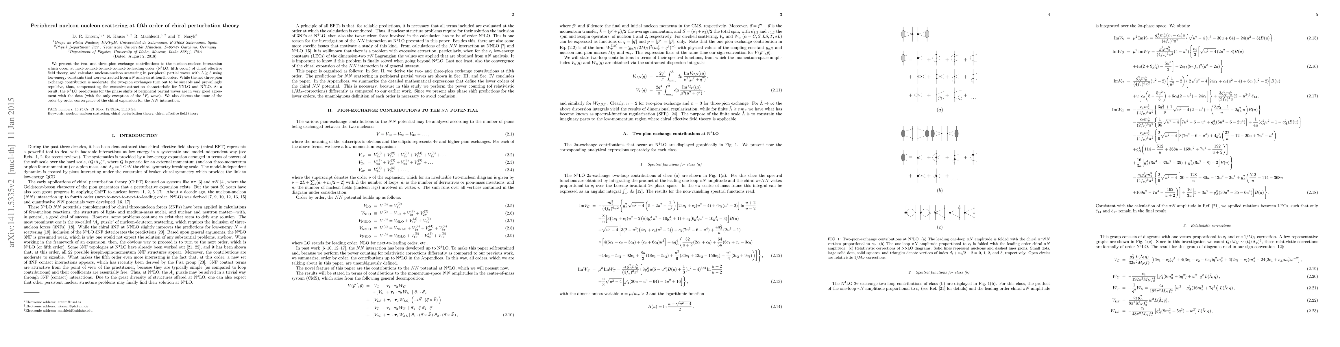 This paper calculates nucleon-nucleon scattering at fifth order of chiral perturbation theory, focusing on two- and three-pion exchange contributions at N4LO. The two-pion exchanges are significant and predominantly repulsive, balancing earlier attraction, leading to good agreement with experimental data for peripheral partial waves.