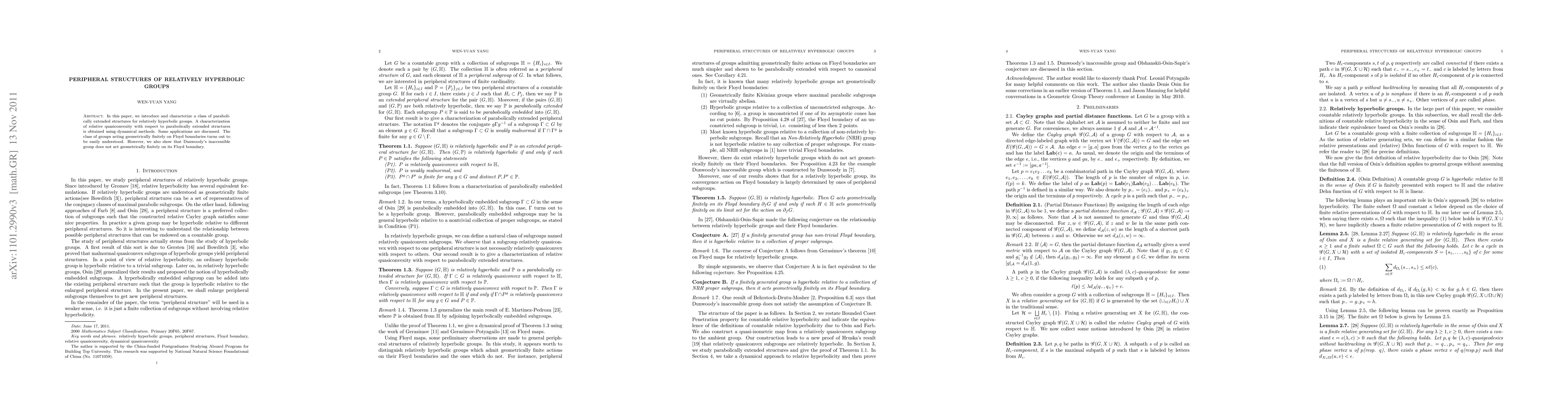 In this paper, we introduce and characterize a class of parabolically extended structures for relatively hyperbolic groups. A characterization of relative quasiconvexity with respect to parabolically extended structures is obtained using dynamical methods. Some applications are discussed. The class of groups acting geometrically finitely on Floyd boundaries turns out to be easily understood. However, we also show that Dunwoody's inaccessible group does not act geometrically finitely on its Floyd boundary.