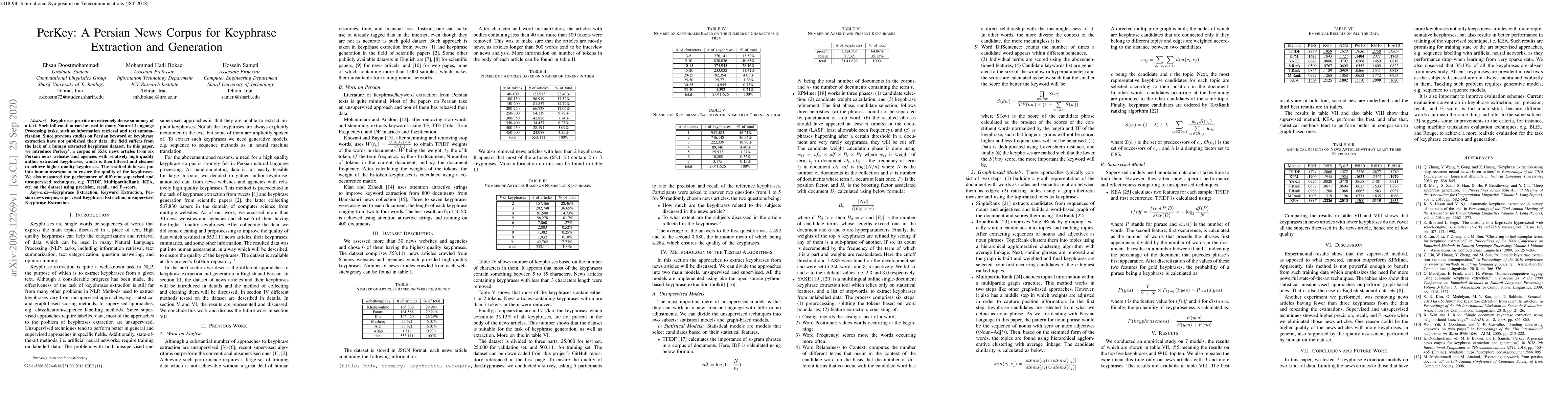This paper introduces PerKey, a corpus of 553k Persian news articles with high-quality, author-extracted keyphrases, addressing the lack of such datasets in Persian NLP. The study evaluates various keyphrase extraction techniques on this dataset.