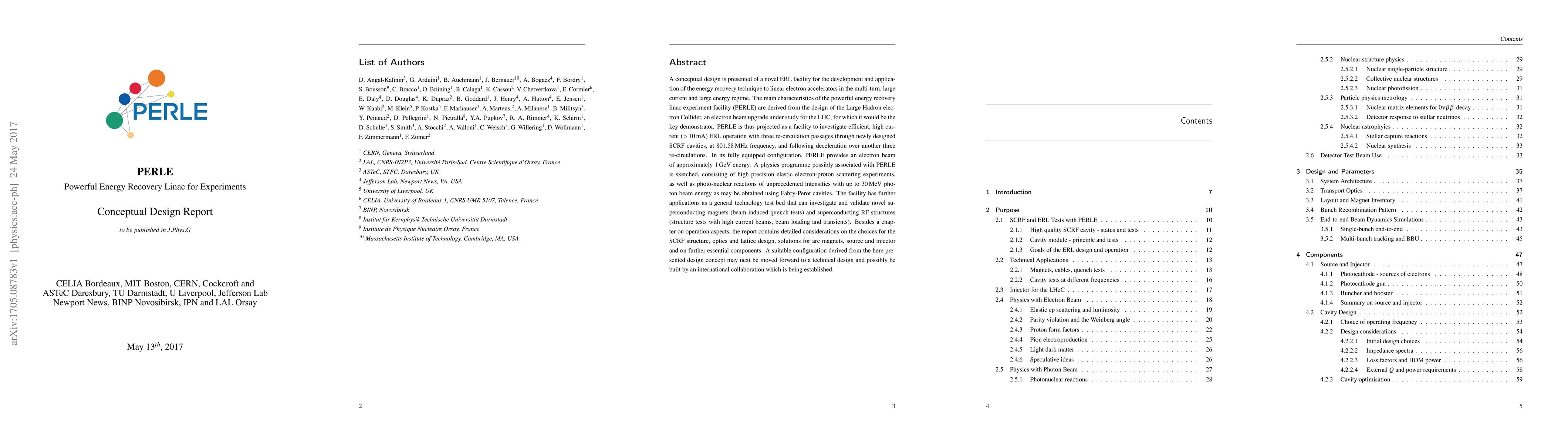 PERLE's key technical contribution lies in its innovative design for efficient high-current ERL operation, incorporating newly designed SCRF cavities and a multi-pass recirculation scheme.