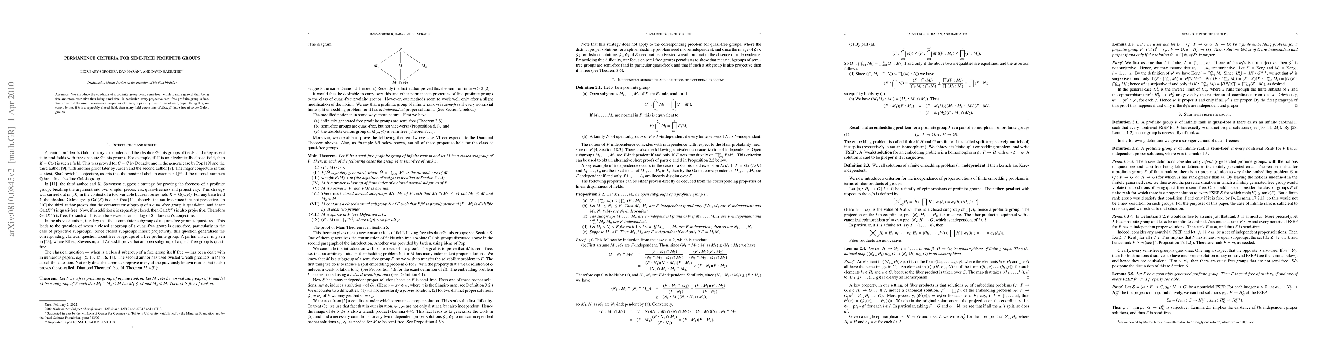 This paper defines semi-free profinite groups, which are more general than free groups but still maintain key permanence properties. It concludes that many field extensions of the formal power series field k((x,y)) over a separably closed field k have free absolute Galois groups.
