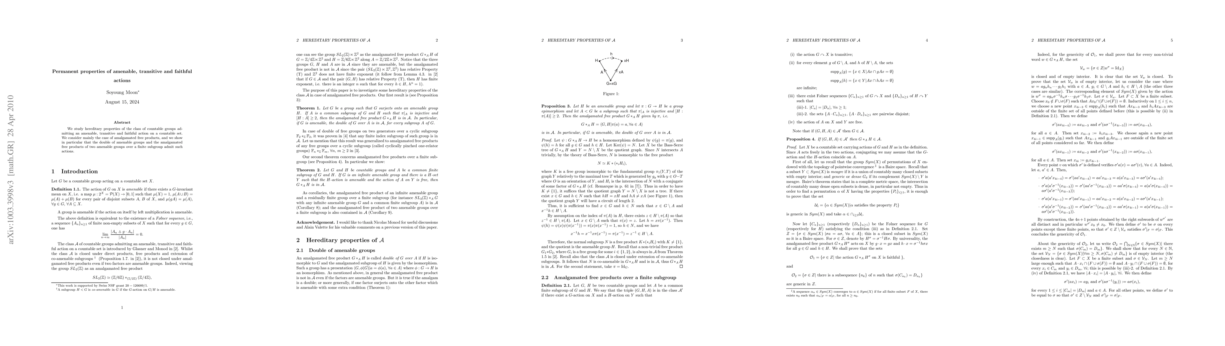 This paper examines the hereditary properties of countable groups that allow for amenable, transitive, and faithful actions on countable sets, focusing on amalgamated free products and demonstrating that the double of amenable groups and amalgamated free products of two amenable groups over a finite subgroup exhibit such actions.