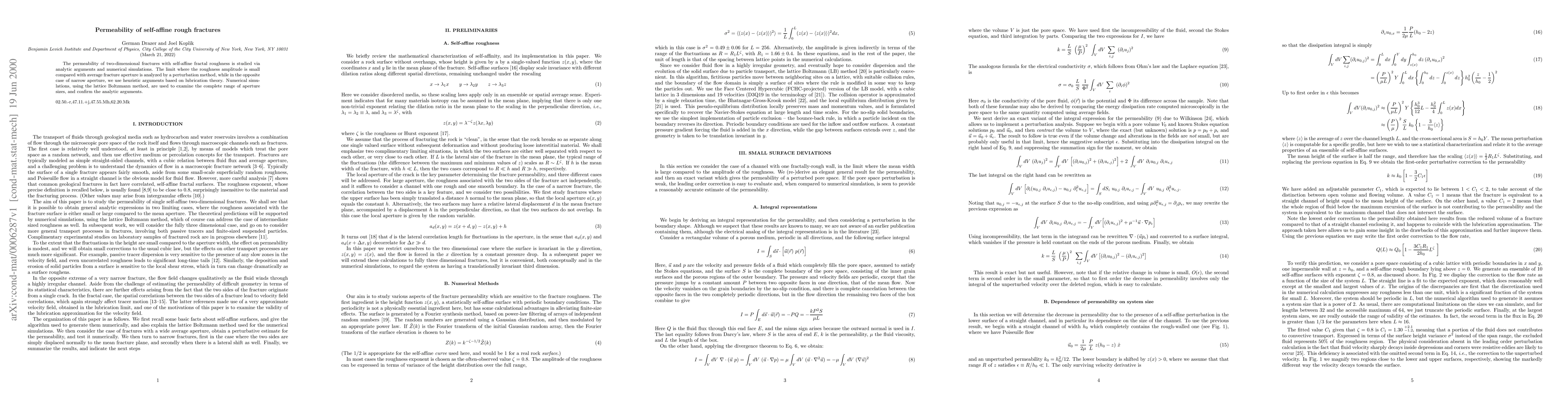 This paper studies the permeability of fractures with self-affine roughness using analytic arguments and numerical simulations, finding that the relationship between aperture size and permeability depends on whether the roughness is small or large compared to the average fracture aperture.