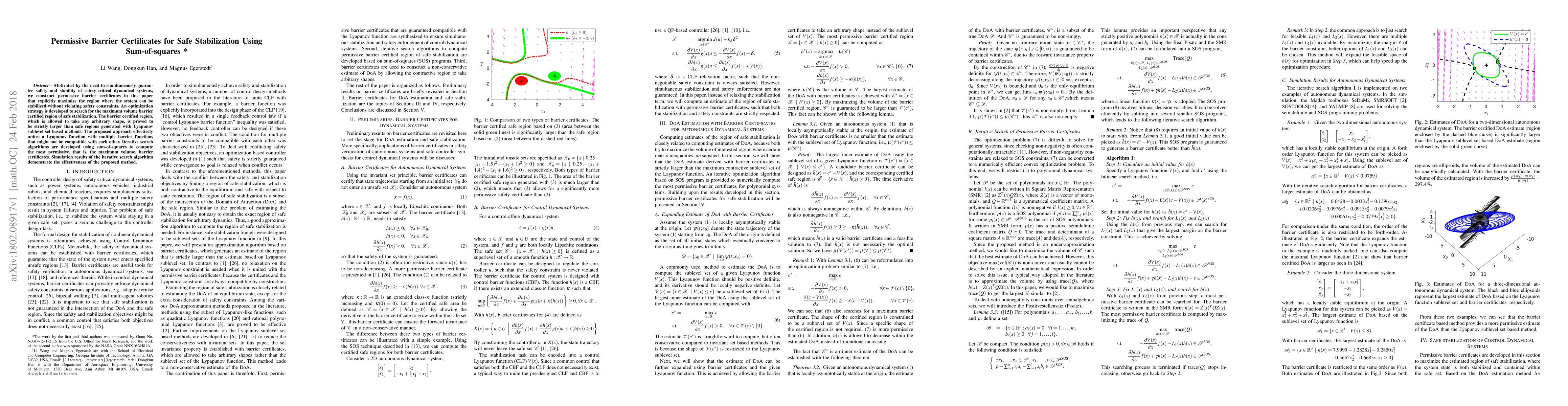 This paper develops permissive barrier certificates to ensure both safety and stability of safety-critical dynamical systems, using sum-of-squares optimization to find the maximum volume region of safe stabilization. The proposed method combines Lyapunov functions with multiple barrier functions, proving a larger safe region compared to traditional Lyapunov-based methods.