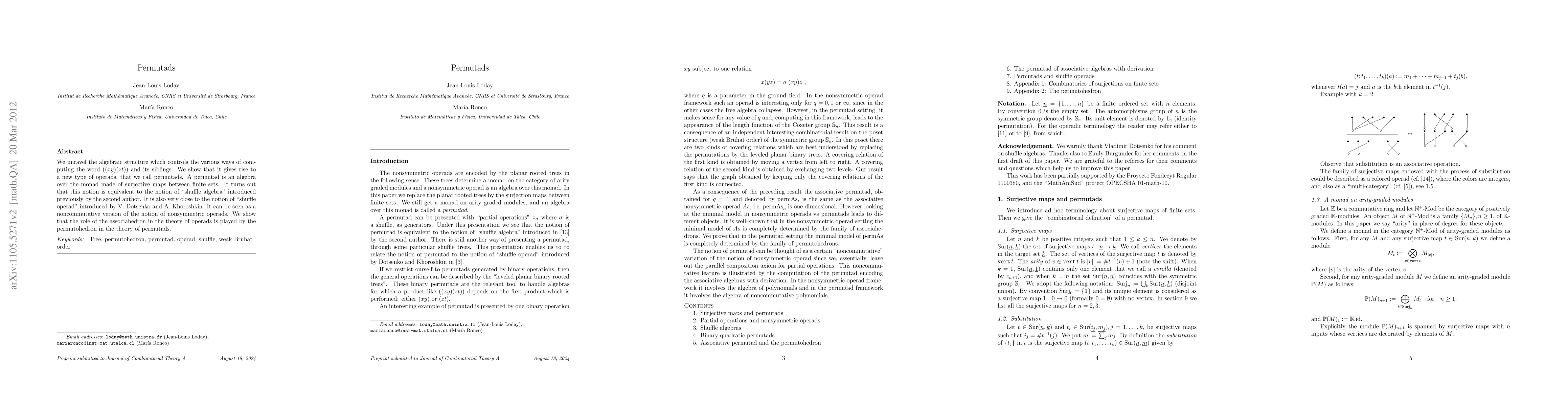 This paper introduces permutads, a new type of operads that generalize nonsymmetric operads in a noncommutative manner. The authors demonstrate the equivalence of permutads to shuffle algebras and their relation to shuffle operads, with the permutohedron playing a role analogous to the associahedron in operad theory.
