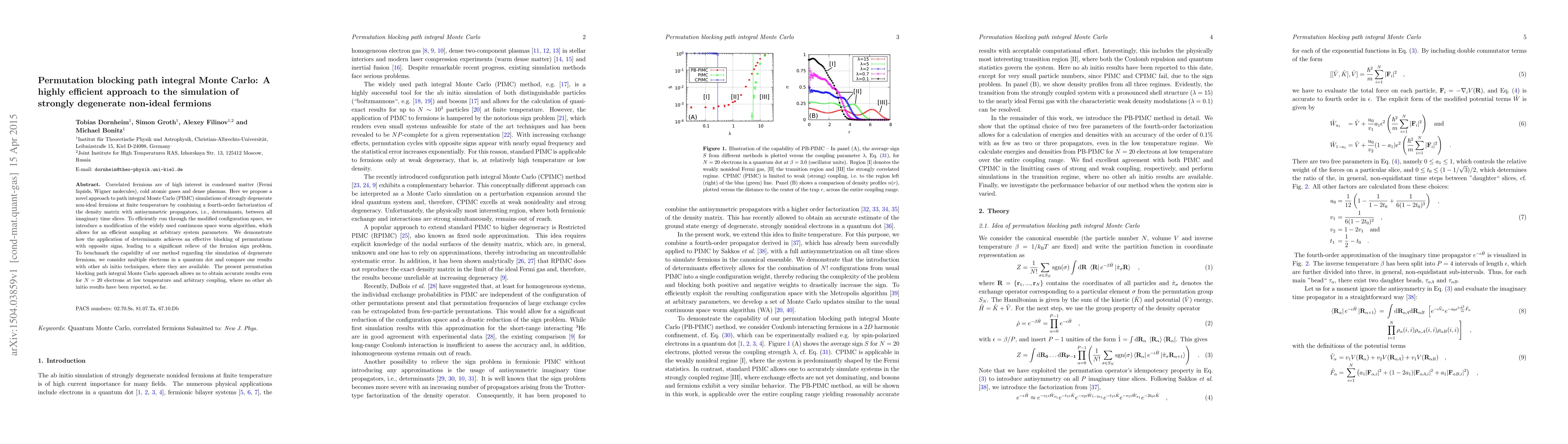 This paper proposes a novel permutation blocking path integral Monte Carlo (PIMC) method for simulating strongly degenerate non-ideal fermions, combining fourth-order factorization with determinants for efficient sampling. The method effectively alleviates the fermion sign problem and achieves accurate results for systems with up to 20 electrons at low temperatures.