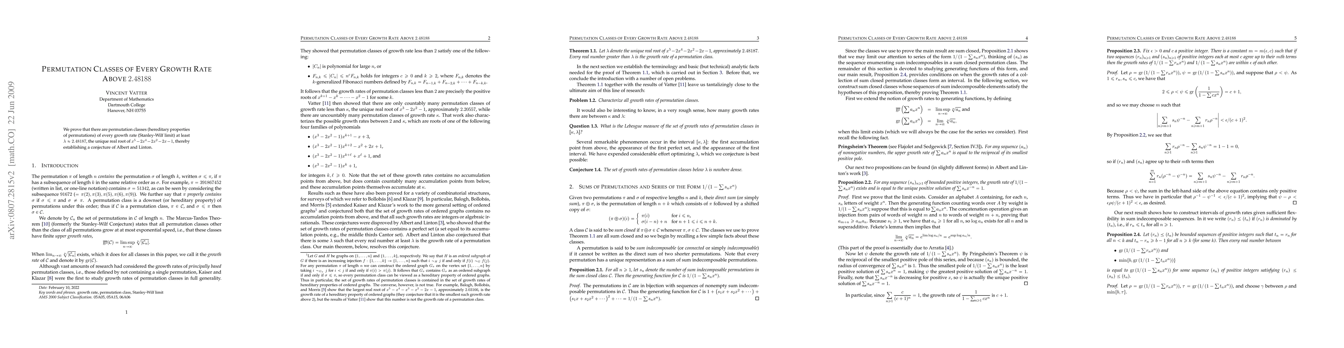 Researchers prove that every growth rate above 2.48187 is achievable in permutation classes, resolving a conjecture by Albert and Linton. This finding establishes a new benchmark for the study of permutations and their properties.