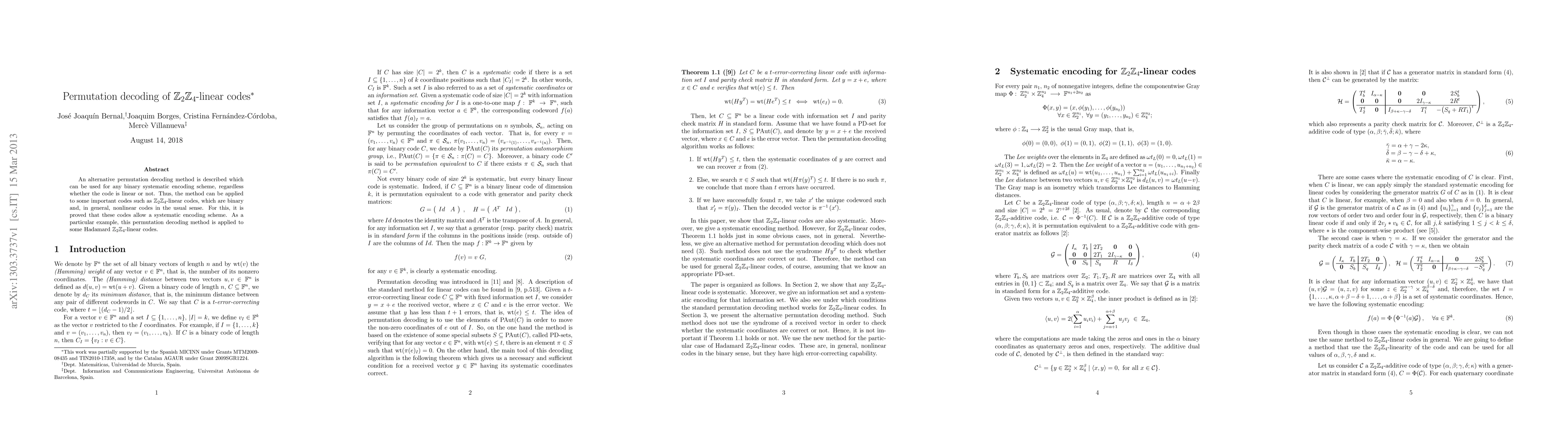 An alternative permutation decoding method is described which can be used for any binary systematic encoding scheme, regardless whether the code is linear or not. Thus, the method can be applied to some important codes such as Z2Z4-linear codes, which are binary and, in general, nonlinear codes in the usual sense. For this, it is proved that these codes allow a systematic encoding scheme. As a particular example, this permutation decoding method is applied to some Hadamard Z2Z4-linear codes.