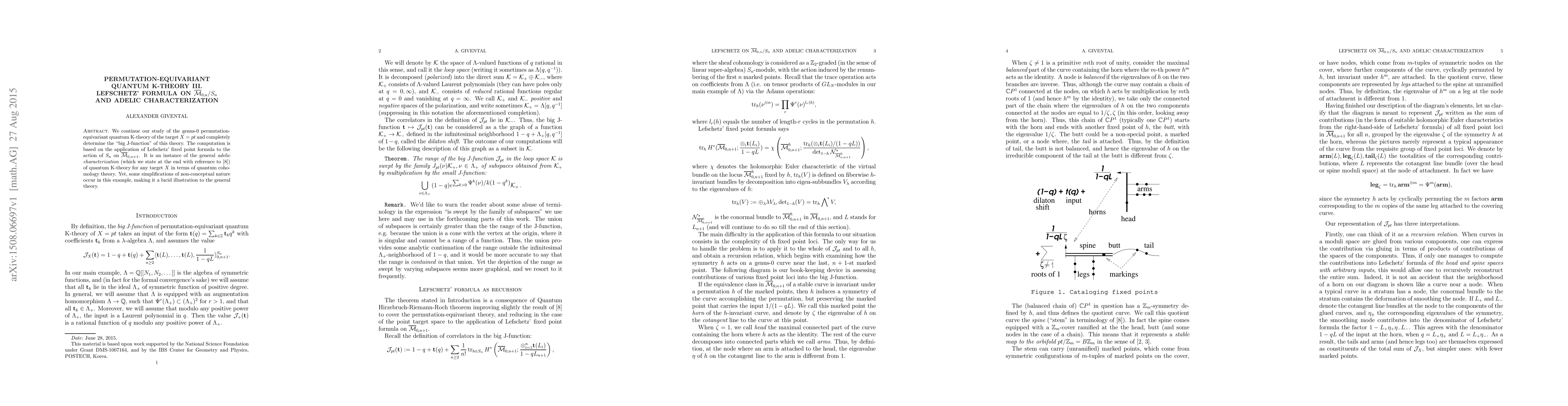 We continue our study of the genus-$0$ permutation-equivariant quantum K-theory of the target $X=pt$, and completely determine the "big J-function" of this theory. The computation is based on the application of Lefschetz' fixed point formula to the action of $S_n$ on $\overline{M}_{0,n+1}$. It is an instance of the general "adelic characterization" (which we state at the end with reference to arXiv:1106.3136) of quantum K-theory for any target $X$ in terms of quantum cohomology theory. Yet, some simplifications of non-conceptual nature occur in this example, making it a lucid illustration to the general theory.