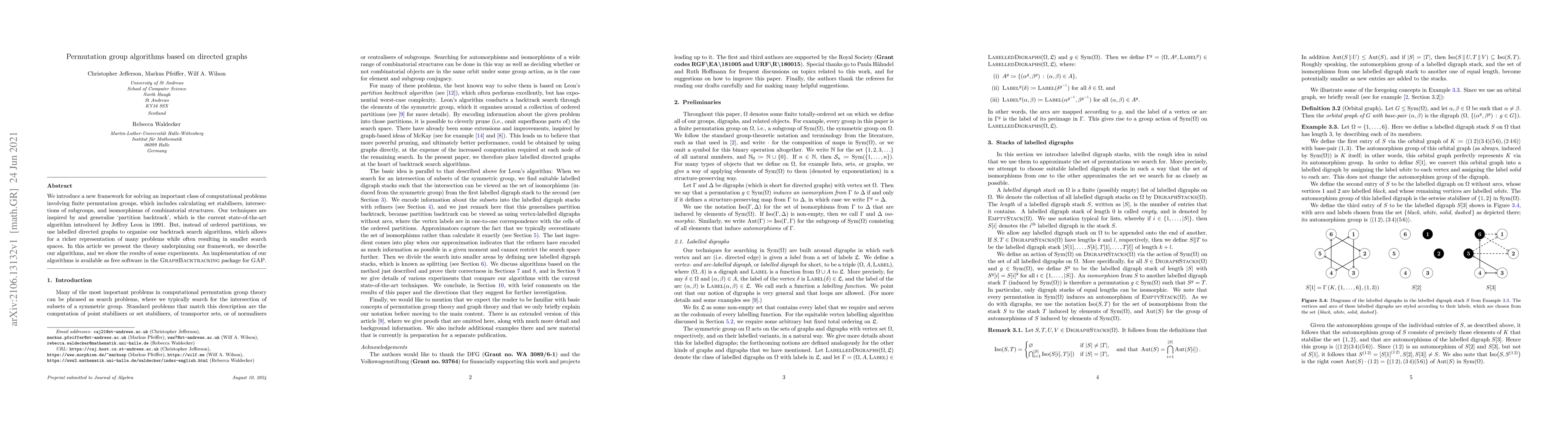 We introduce a new framework for solving an important class of computational problems involving finite permutation groups, which includes calculating set stabilisers, intersections of subgroups, and isomorphisms of combinatorial structures. Our techniques are inspired by and generalise 'partition backtrack', which is the current state-of-the-art algorithm introduced by Jeffrey Leon in 1991. But, instead of ordered partitions, we use labelled directed graphs to organise our backtrack search algorithms, which allows for a richer representation of many problems while often resulting in smaller search spaces. In this article we present the theory underpinning our framework, we describe our algorithms, and we show the results of some experiments. An implementation of our algorithms is available as free software in the GraphBacktracking package for GAP.