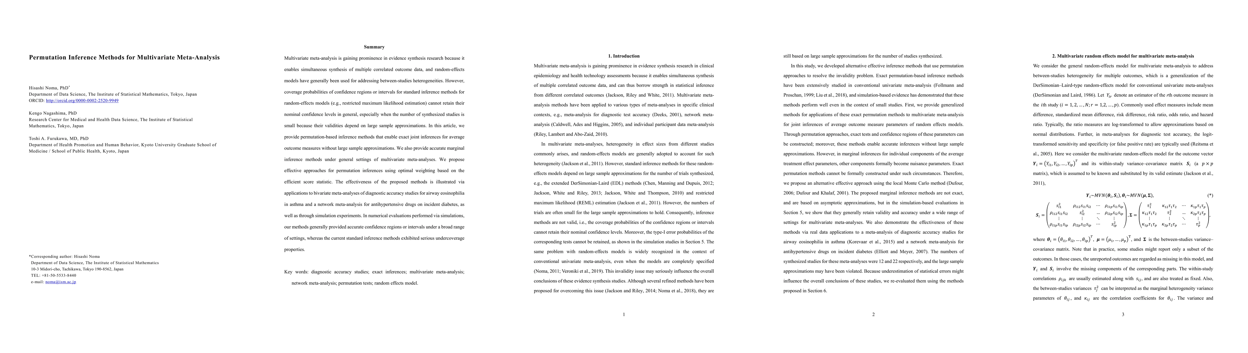 The research presents novel permutation-based inference methods for multivariate meta-analysis, ensuring exact joint inferences and accurate marginal inferences without relying on large sample approximations.