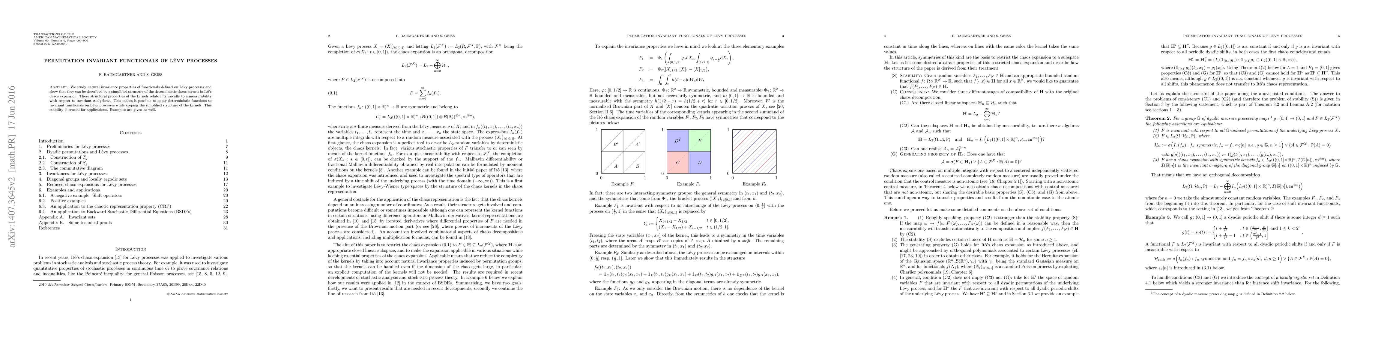 We study natural invariance properties of functionals defined on L\'evy processes and show that they can be described by a simplified structure of the deterministic chaos kernels in It\^o's chaos expansion. These structural properties of the kernels relate intrinsically to a measurability with respect to invariant $\sigma$-algebras. This makes it possible to apply deterministic functions to invariant functionals on L\'evy processes while keeping the simplified structure of the kernels. This stability is crucial for applications. Examples are given as well.