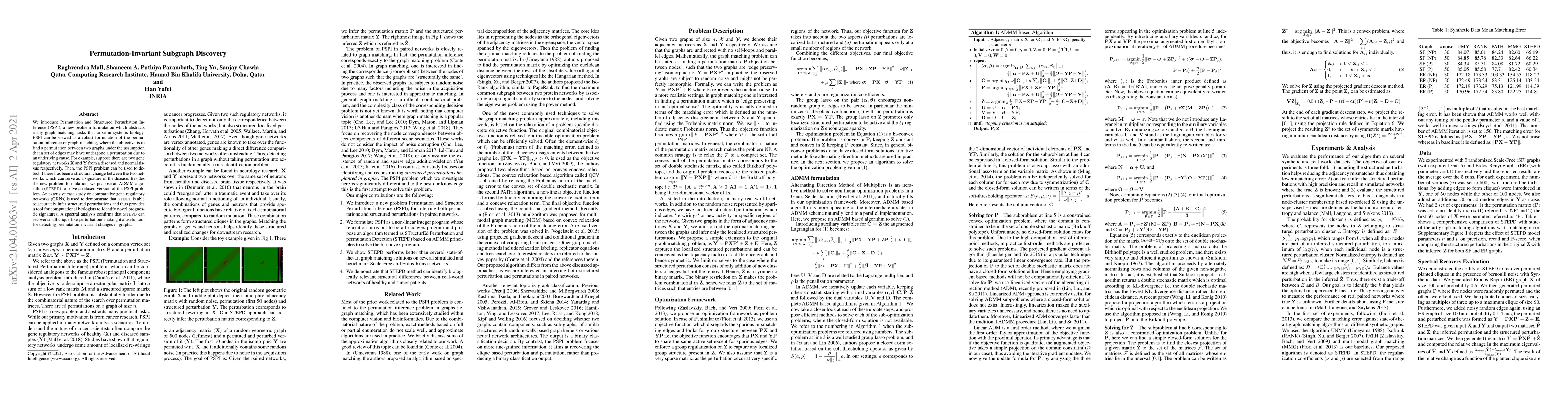 We introduce Permutation and Structured Perturbation Inference (PSPI), a new problem formulation that abstracts many graph matching tasks that arise in systems biology. PSPI can be viewed as a robust formulation of the permutation inference or graph matching, where the objective is to find a permutation between two graphs under the assumption that a set of edges may have undergone a perturbation due to an underlying cause. For example, suppose there are two gene regulatory networks X and Y from a diseased and normal tissue respectively. Then, the PSPI problem can be used to detect if there has been a structural change between the two networks which can serve as a signature of the disease. Besides the new problem formulation, we propose an ADMM algorithm (STEPD) to solve a relaxed version of the PSPI problem. An extensive case study on comparative gene regulatory networks (GRNs) is used to demonstrate that STEPD is able to accurately infer structured perturbations and thus provides a tool for computational biologists to identify novel prognostic signatures. A spectral analysis confirms that STEPD can recover small clique-like perturbations making it a useful tool for detecting permutation-invariant changes in graphs.