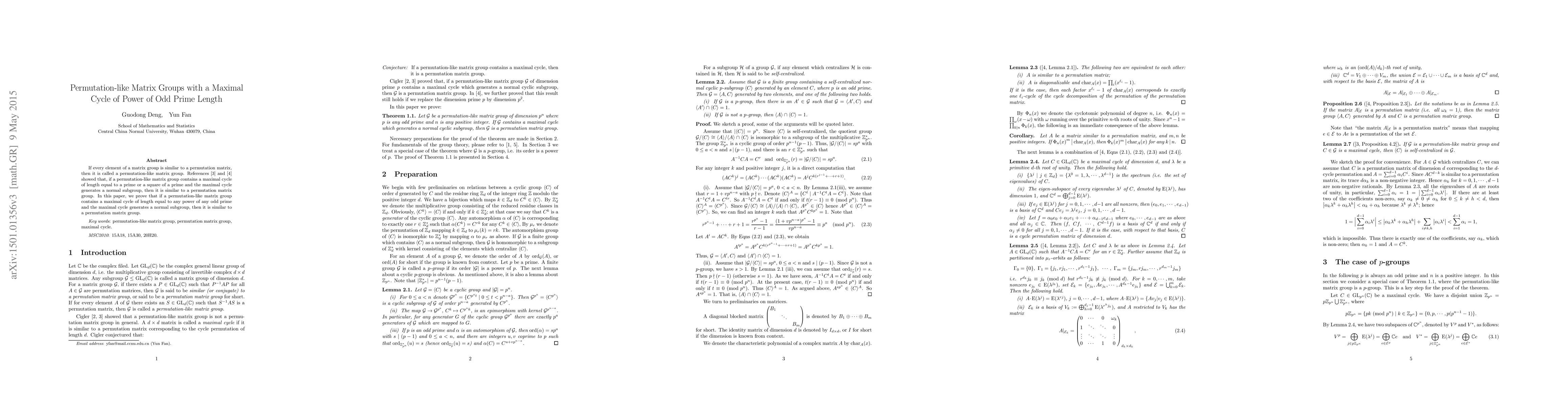 A new paper proves that if a permutation-like matrix group contains a maximal cycle of length equal to any power of an odd prime and the maximal cycle generates a normal subgroup, then it is similar to a permutation matrix group.