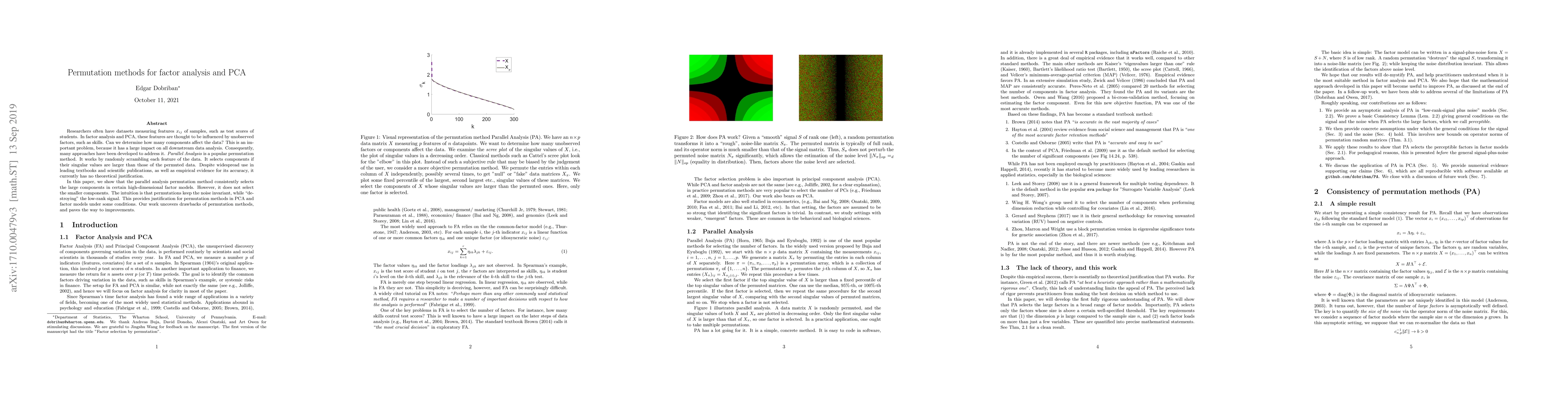 Researchers often have datasets measuring features $x_{ij}$ of samples, such as test scores of students. In factor analysis and PCA, these features are thought to be influenced by unobserved factors, such as skills. Can we determine how many components affect the data? This is an important problem, because it has a large impact on all downstream data analysis. Consequently, many approaches have been developed to address it. Parallel Analysis is a popular permutation method. It works by randomly scrambling each feature of the data. It selects components if their singular values are larger than those of the permuted data. Despite widespread use in leading textbooks and scientific publications, as well as empirical evidence for its accuracy, it currently has no theoretical justification. In this paper, we show that the parallel analysis permutation method consistently selects the large components in certain high-dimensional factor models. However, it does not select the smaller components. The intuition is that permutations keep the noise invariant, while "destroying" the low-rank signal. This provides justification for permutation methods in PCA and factor models under some conditions. Our work uncovers drawbacks of permutation methods, and paves the way to improvements.
