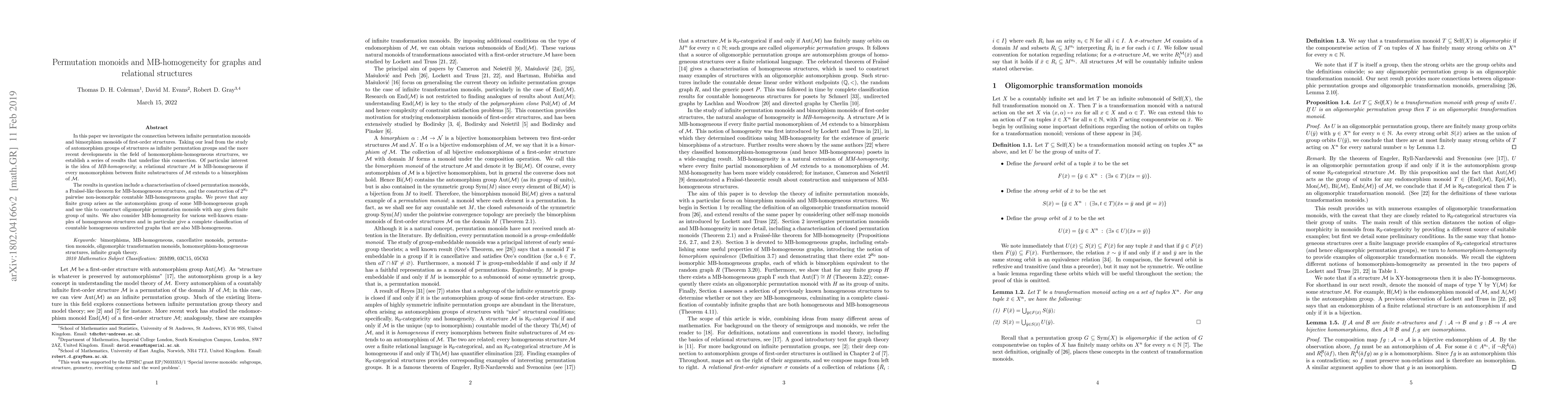 This paper explores the link between infinite permutation monoids and bimorphism monoids in first-order structures, focusing on MB-homogeneity, where a structure's every monomorphism extends to a bimorphism. It establishes a Fraissé-like theorem for MB-homogeneous structures, constructs non-isomorphic MB-homogeneous graphs, and classifies countable homogeneous undirected graphs that are MB-homogeneous.