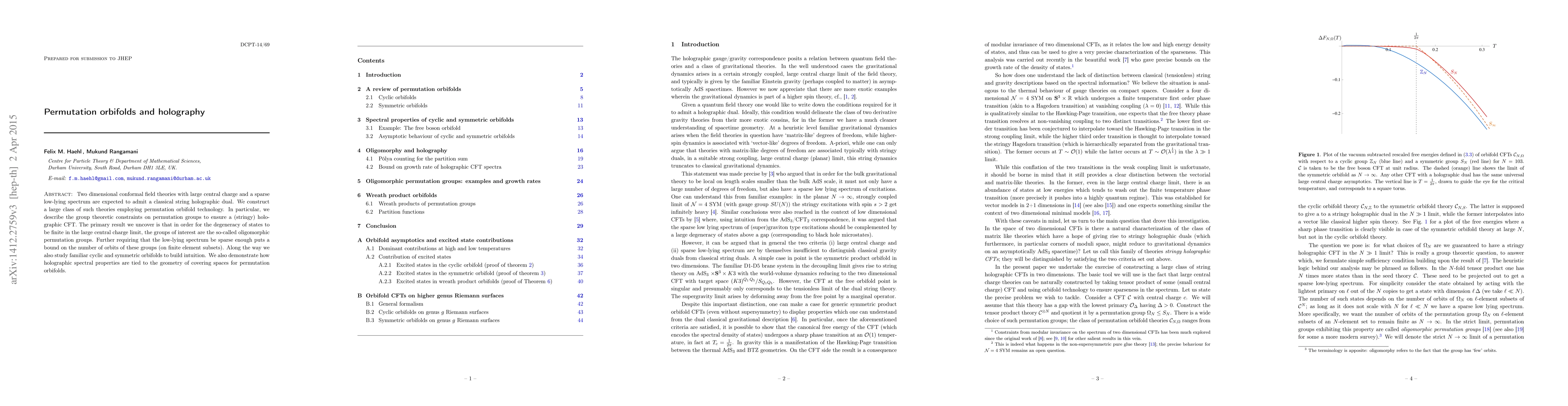 This paper constructs a wide class of two-dimensional conformal field theories (CFTs) using permutation orbifold techniques, identifying oligomorphic permutation groups as those that support a finite state degeneracy in the large central charge limit. It also links holographic spectral properties to the geometry of covering spaces in permutation orbifolds.