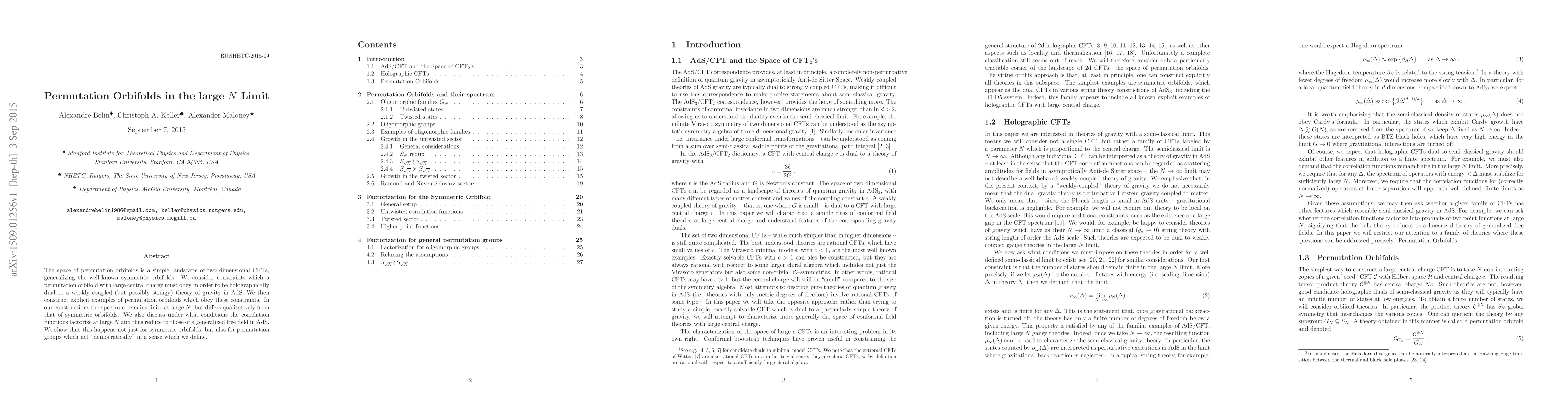 The paper explores permutation orbifolds in two-dimensional CFTs, identifying constraints for large central charge that allow for holographic dualities in AdS gravity. It constructs examples where the spectrum remains finite at large N, differing from symmetric orbifolds, and discusses conditions under which correlation functions factorize, revealing a generalized free field structure in AdS.