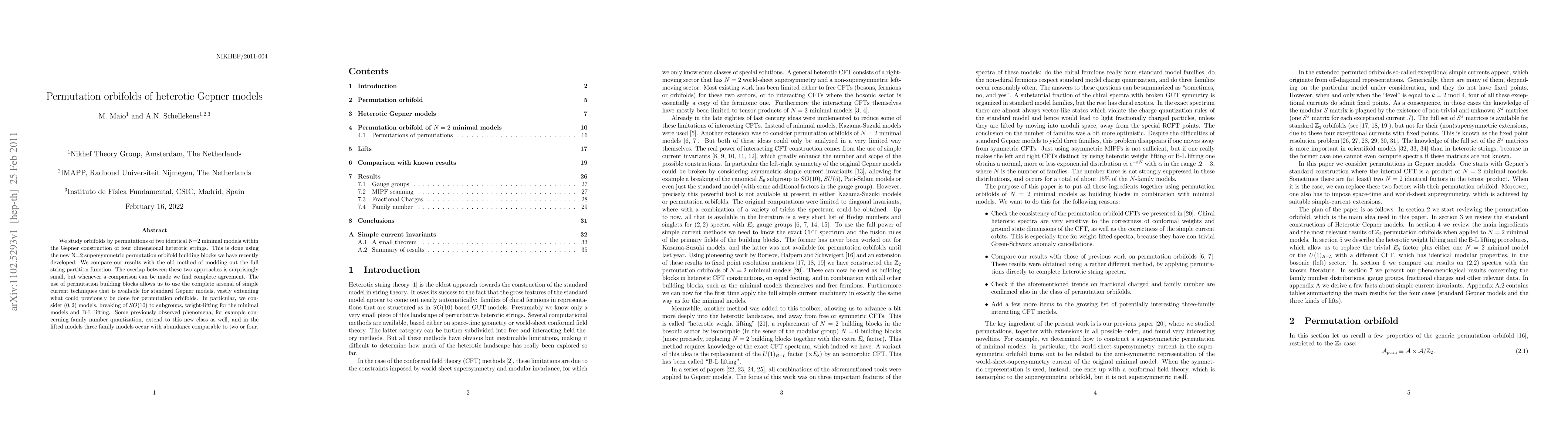 We study orbifolds by permutations of two identical N=2 minimal models within the Gepner construction of four dimensional heterotic strings. This is done using the new N=2 supersymmetric permutation orbifold building blocks we have recently developed. We compare our results with the old method of modding out the full string partition function. The overlap between these two approaches is surprisingly small, but whenever a comparison can be made we find complete agreement. The use of permutation building blocks allows us to use the complete arsenal of simple current techniques that is available for standard Gepner models, vastly extending what could previously be done for permutation orbifolds. In particular, we consider (0,2) models, breaking of SO(10) to subgroups, weight-lifting for the minimal models and B-L lifting. Some previously observed phenomena, for example concerning family number quantization, extend to this new class as well, and in the lifted models three family models occur with abundance comparable to two or four.