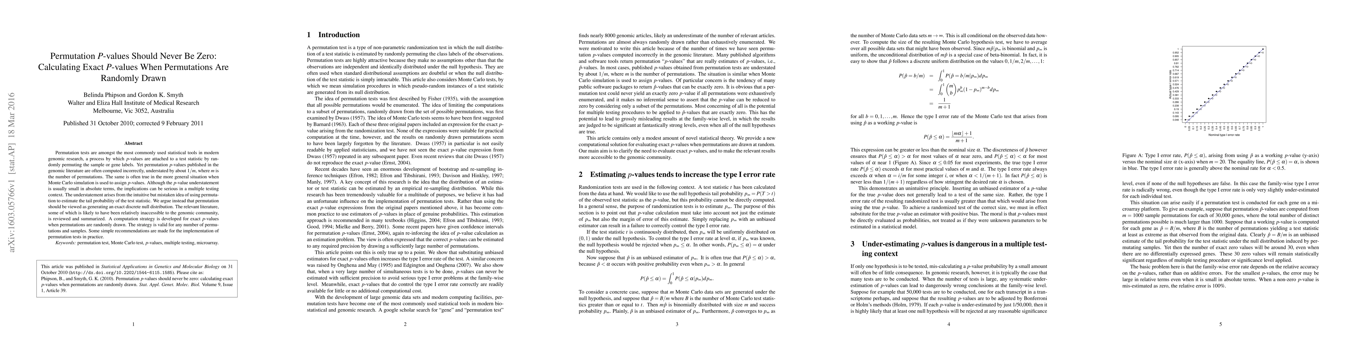 A study corrects a common misconception about permutation p-values in genomic research, proposing that exact p-values should always be calculated instead of relying on incorrect estimates. It introduces a new computation strategy for exact p-values when permutations are randomly drawn.