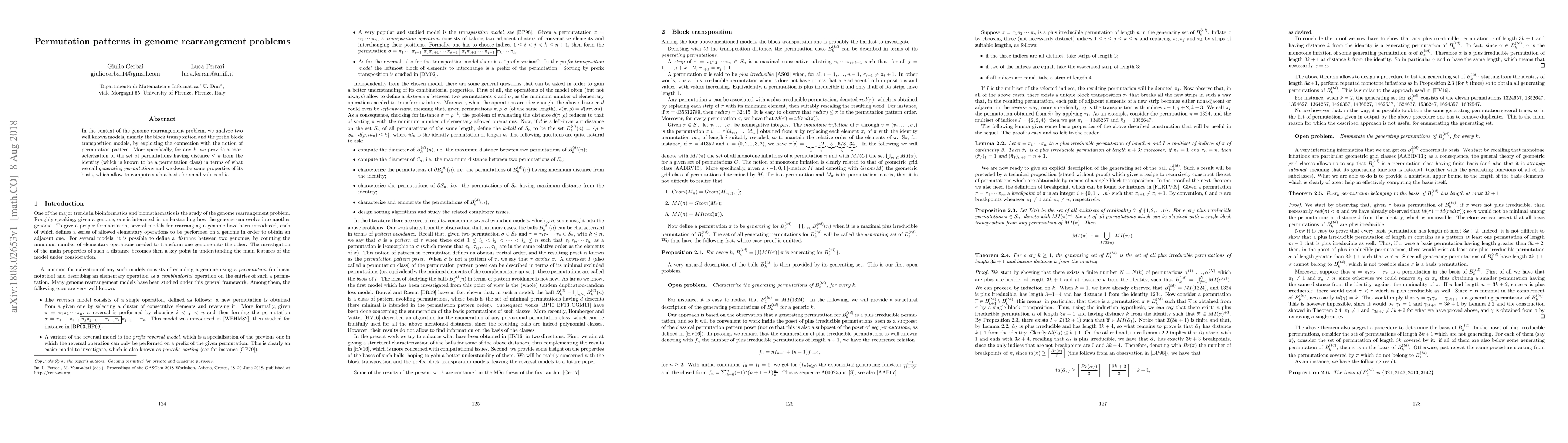 Researchers analyzed two genome rearrangement models using permutation patterns to understand how permutations relate to each other in terms of distance from the identity permutation.