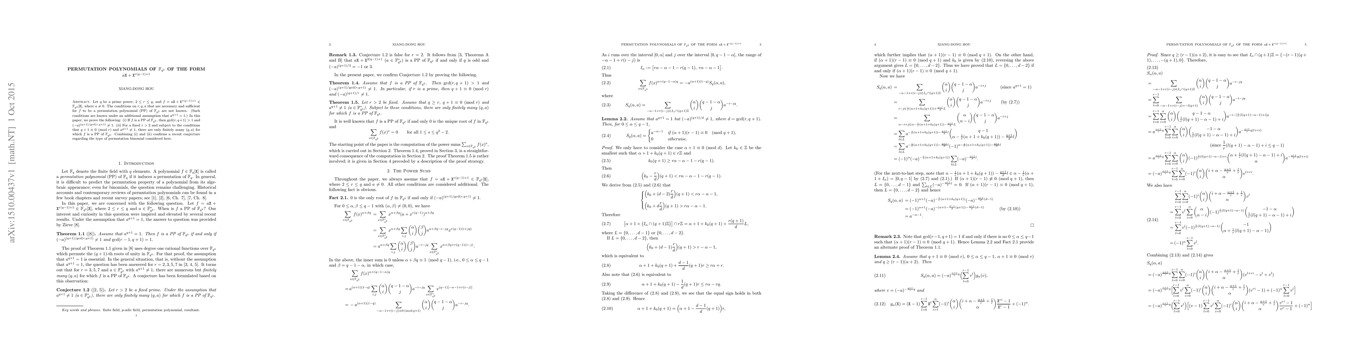 This paper investigates the conditions under which the polynomial $f=a{\tt X}+{\tt X}^{r(q-1)+1}$ is a permutation polynomial in $\Bbb F_{q^2}$. It proves that if $f$ is a permutation polynomial, then $\text{gcd}(r,q+1)>1$ and $(-a)^{(q+1)/\text{gcd}(r,q+1)}\ne 1$. Additionally, it shows that for fixed $r>2$, there are only finitely many $q$ and $a$ such that $f$ is a permutation polynomial, given certain congruence conditions.