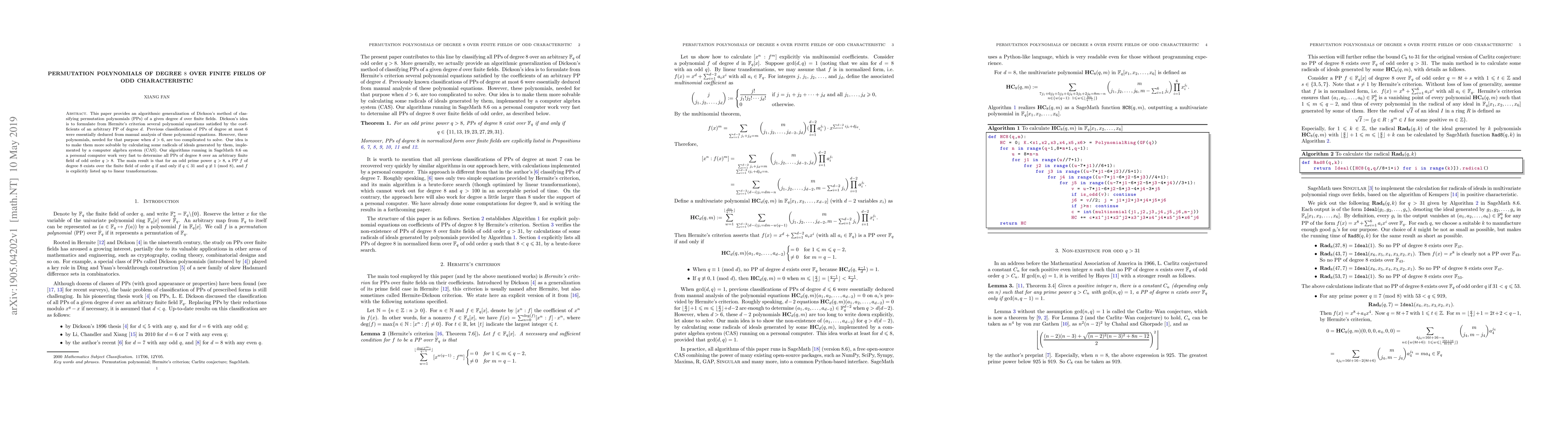 This paper provides an algorithmic generalization of Dickson's method of classifying permutation polynomials (PPs) of a given degree $d$ over finite fields. Dickson's idea is to formulate from Hermite's criterion several polynomial equations satisfied by the coefficients of an arbitrary PP of degree $d$. Previous classifications of PPs of degree at most $6$ were essentially deduced from manual analysis of these polynomial equations. However, these polynomials, needed for that purpose when $d>6$, are too complicated to solve. Our idea is to make them more solvable by calculating some radicals of ideals generated by them, implemented by a computer algebra system (CAS). Our algorithms running in SageMath 8.6 on a personal computer work very fast to determine all PPs of degree $8$ over an arbitrary finite field of odd order $q>8$. The main result is that for an odd prime power $q>8$, a PP $f$ of degree $8$ exists over the finite field of order $q$ if and only if $q\leqslant 31$ and $q\not\equiv 1\ (\mathrm{mod}\ 8)$, and $f$ is explicitly listed up to linear transformations.