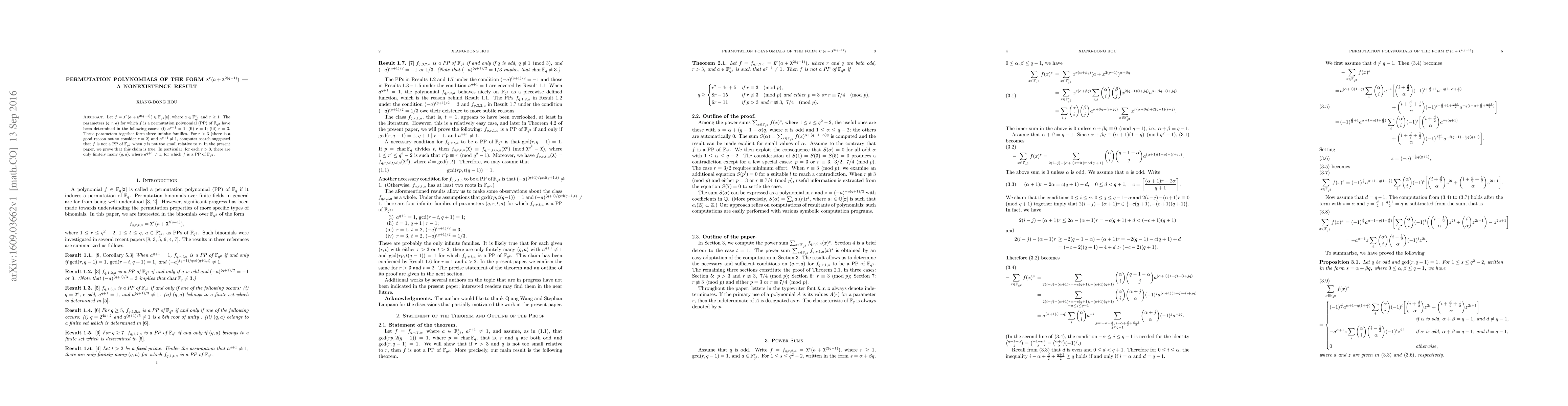 This paper proves that for $r>3$, the polynomial $f={\tt X}^r(a+{\tt X}^{2(q-1)})$ is not a permutation polynomial of ${\Bbb F}_{q^2}$ for most parameters $(q,r,a)$, confirming earlier computer search results. It establishes that there are only finitely many exceptions for $a^{q+1}\ne 1$.