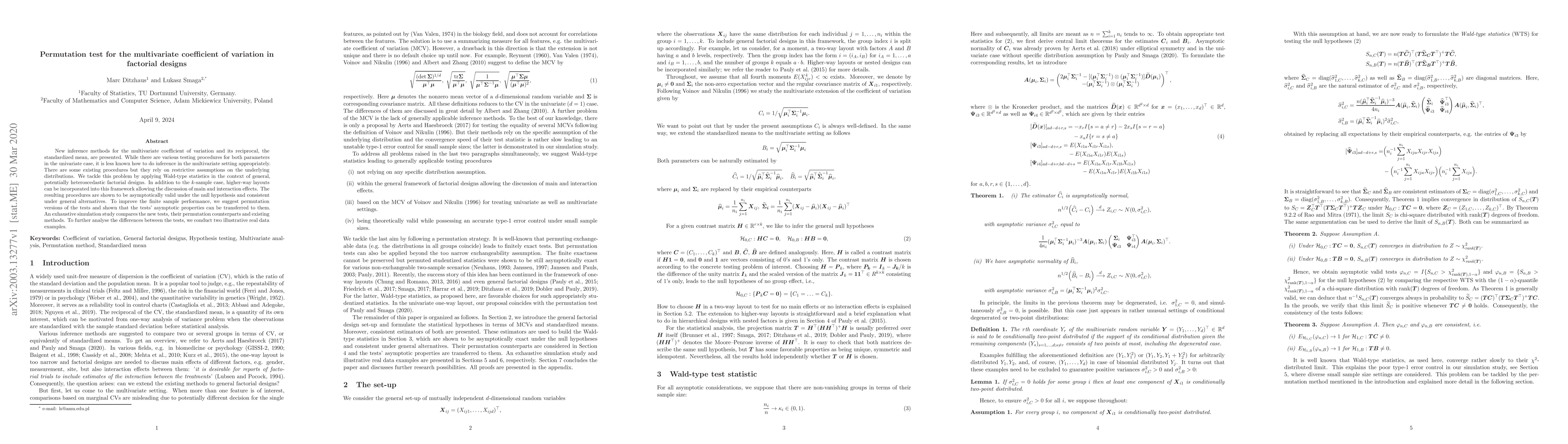 New inference methods for the multivariate coefficient of variation and its reciprocal, the standardized mean, are presented. While there are various testing procedures for both parameters in the univariate case, it is less known how to do inference in the multivariate setting appropriately. There are some existing procedures but they rely on restrictive assumptions on the underlying distributions. We tackle this problem by applying Wald-type statistics in the context of general, potentially heteroscedastic factorial designs. In addition to the $k$-sample case, higher-way layouts can be incorporated into this framework allowing the discussion of main and interaction effects. The resulting procedures are shown to be asymptotically valid under the null hypothesis and consistent under general alternatives. To improve the finite sample performance, we suggest permutation versions of the tests and shown that the tests' asymptotic properties can be transferred to them. An exhaustive simulation study compares the new tests, their permutation counterparts and existing methods. To further analyse the differences between the tests, we conduct two illustrative real data examples.
