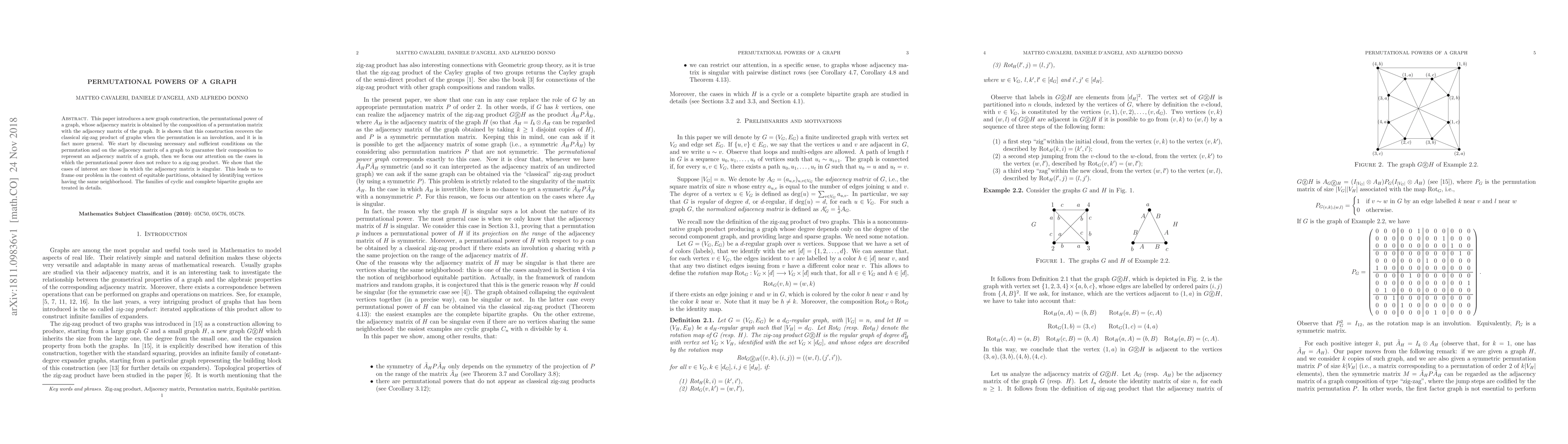 Researchers introduce a new graph construction called permutational power, which combines a permutation matrix with an adjacency matrix to create a new adjacency matrix. It recovers the zig-zag product of graphs in certain cases and provides insights into equitable partitions and singular adjacency matrices.