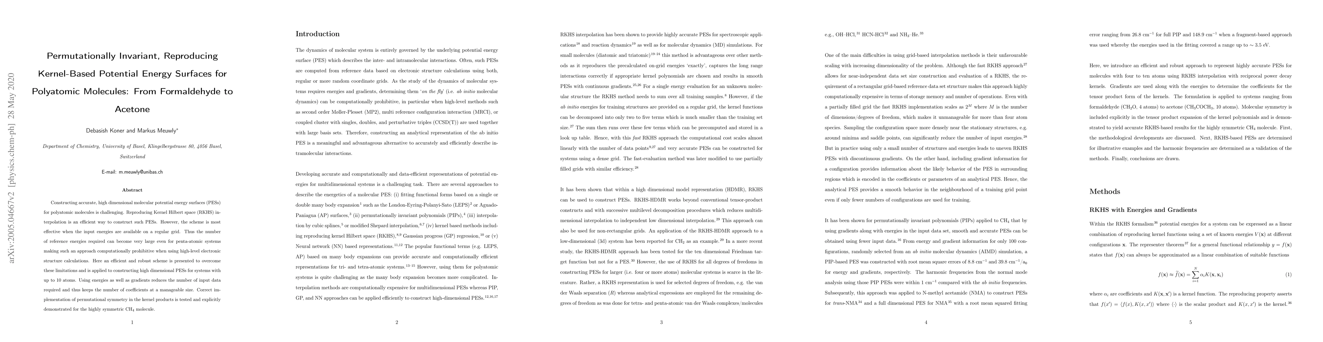This paper presents a robust, permutationally invariant method for constructing high-dimensional potential energy surfaces (PESs) for polyatomic molecules using reproducing kernel Hilbert space interpolation. The approach reduces the computational burden by incorporating both energies and gradients, demonstrated effectively for systems up to 10 atoms.