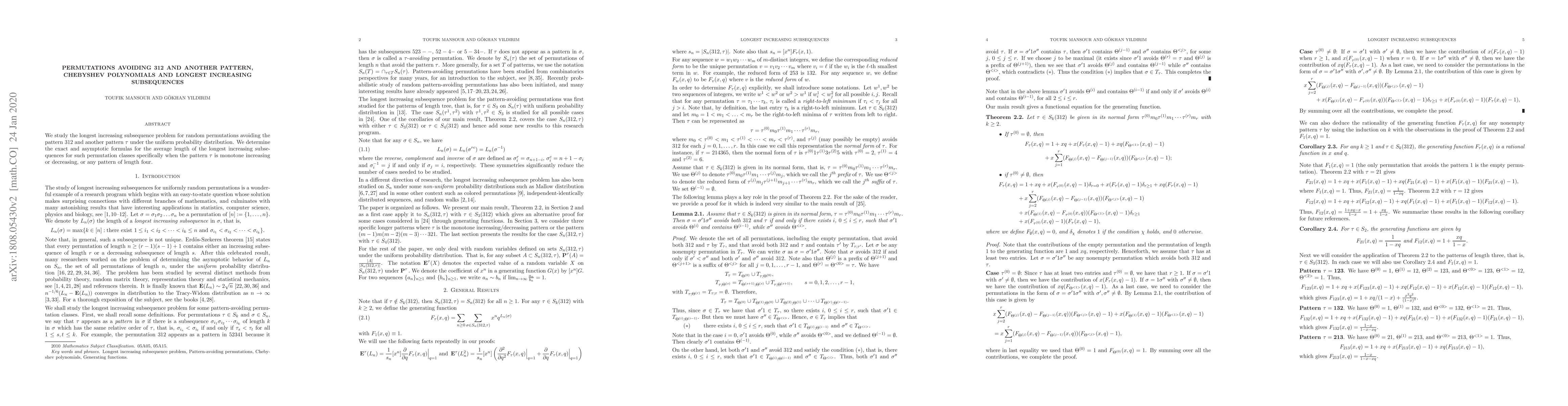 This research investigates the longest increasing subsequences in random permutations that avoid specific patterns, namely $312$ and another pattern $\tau$. It derives exact and asymptotic formulas for the average length of these subsequences when $\tau$ is monotone or of length four.