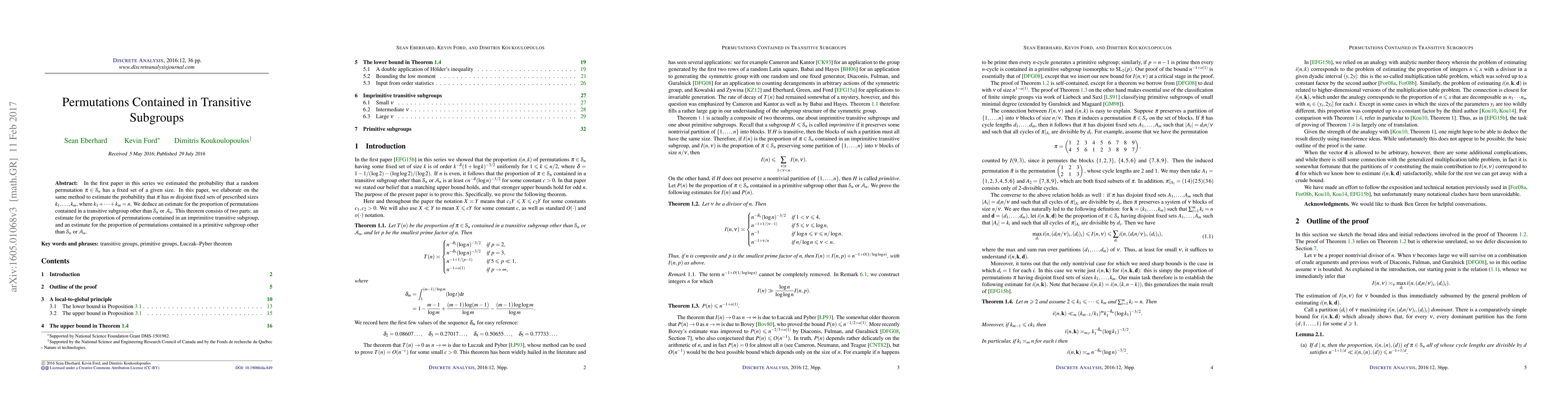 In the first paper in this series we estimated the probability that a random permutation $\pi\in\mathcal{S}_n$ has a fixed set of a given size. In this paper, we elaborate on the same method to estimate the probability that $\pi$ has $m$ disjoint fixed sets of prescribed sizes $k_1,\dots,k_m$, where $k_1+\cdots+k_m=n$. We deduce an estimate for the proportion of permutations contained in a transitive subgroup other than $\mathcal{S}_n$ or $\mathcal{A}_n$. This theorem consists of two parts: an estimate for the proportion of permutations contained in an imprimitive transitive subgroup, and an estimate for the proportion of permutations contained in a primitive subgroup other than $\mathcal{S}_n$ or $\mathcal{A}_n$.