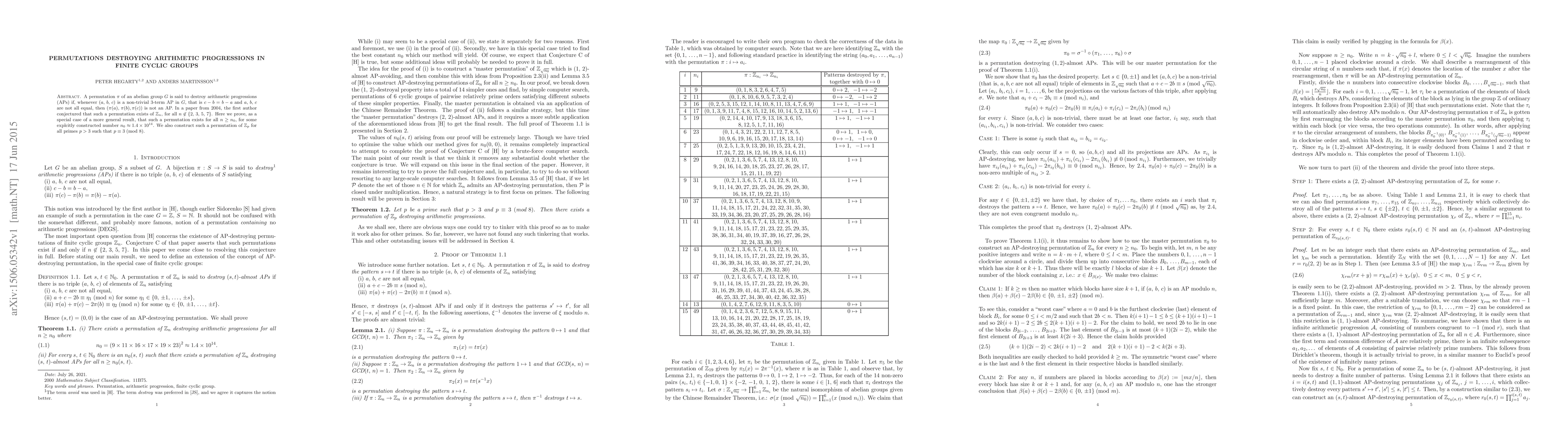 A permutation \pi of an abelian group G is said to destroy arithmetic progressions (APs) if, whenever (a,b,c) is a non-trivial 3-term AP in G, that is c-b=b-a and a,b,c are not all equal, then (\pi(a),\pi(b),\pi(c)) is not an AP. In a paper from 2004, the first author conjectured that such a permutation exists of Z/nZ, for all n except 2,3,5 and 7. Here we prove, as a special case of a more general result, that such a permutation exists for all n >= n_0, for some explcitly constructed number n_0 \approx 1.4 x 10^{14}. We also construct such a permutation of Z/pZ for all primes p > 3 such that p = 3 (mod 8).
