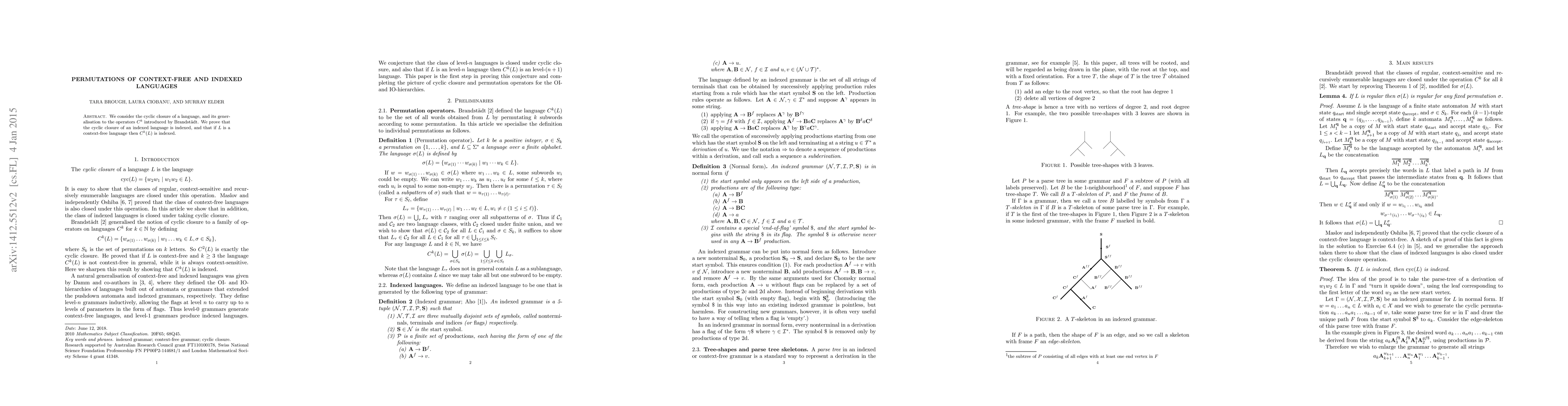 This paper explores how the cyclic closure of languages behaves under various operations, proving that certain properties can be preserved or generalized. It shows that the cyclic closure of indexed languages is also indexed, with context-free languages being a special case.
