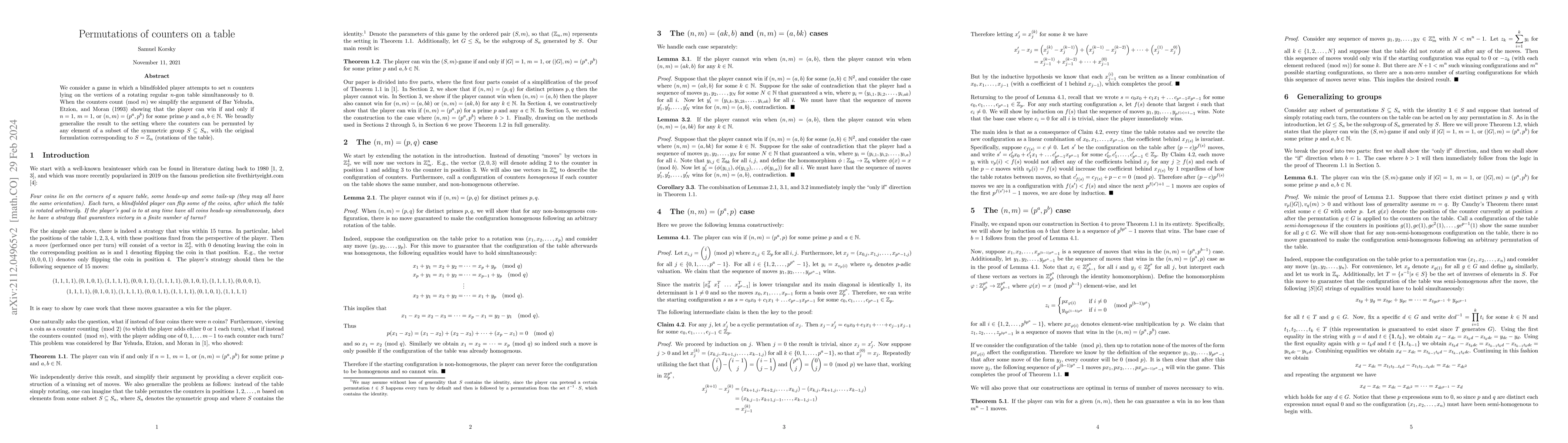 We consider a game in which a blindfolded player attempts to set $n$ counters lying on the vertices of a rotating regular $n$-gon table simultaneously to $0$. When the counters count$\pmod{m}$ we simplify the argument of Bar Yehuda, Etzion, and Moran (1993) showing that the player can win if and only if $n = 1$, $m = 1$, or $(n, m) = (p^a, p^b)$ for some prime $p$ and $a, b \in \mathbb{N}$. We broadly generalize the result to the setting where the counters can be permuted by any element of a subset of the symmetric group $S \subseteq S_n$, with the original formulation corresponding to $S = \mathbb{Z}_n$ (rotations of the table).