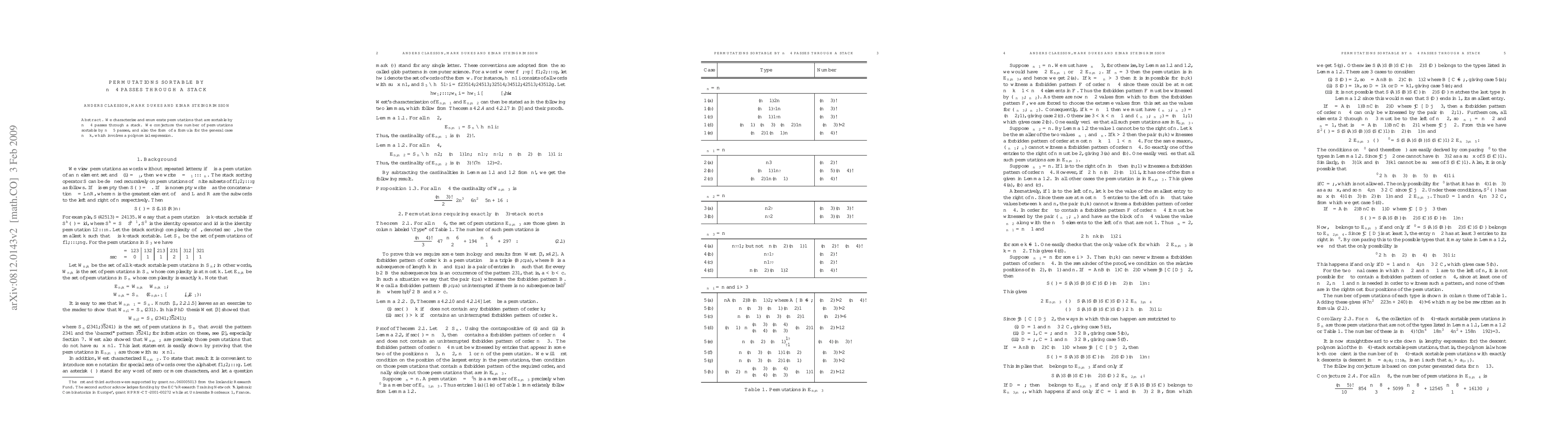 This paper characterizes and counts permutations that can be sorted by n-4 passes through a stack, proposes a conjecture for n-5 passes, and suggests a polynomial formula for the general case of n-k passes.