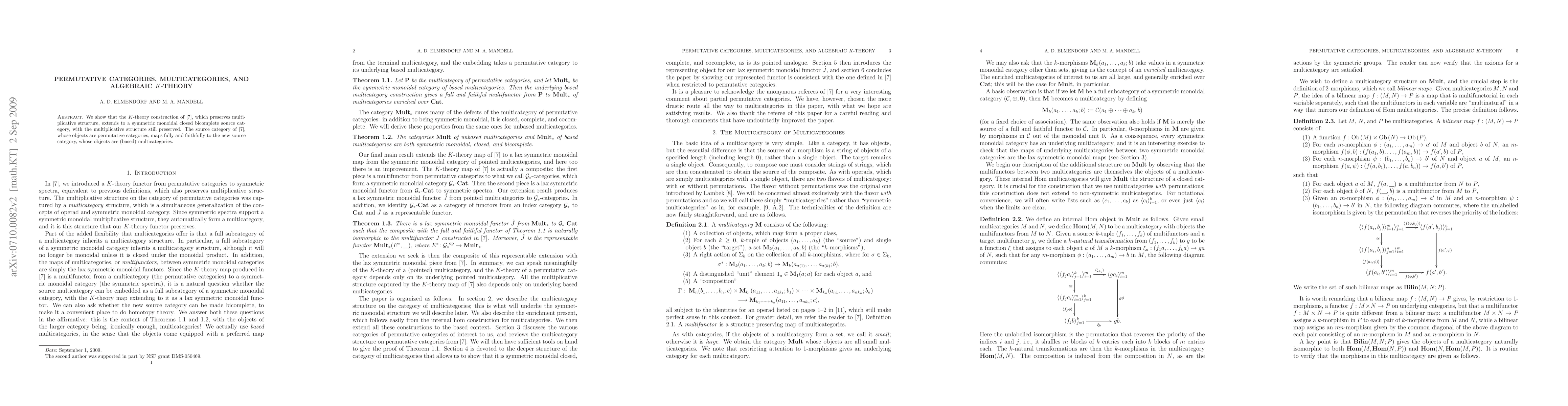 We show that the $K$-theory construction of arXiv:math/0403403, which preserves multiplicative structure, extends to a symmetric monoidal closed bicomplete source category, with the multiplicative structure still preserved. The source category of arXiv:math/0403403, whose objects are permutative categories, maps fully and faithfully to the new source category, whose objects are (based) multicategories.