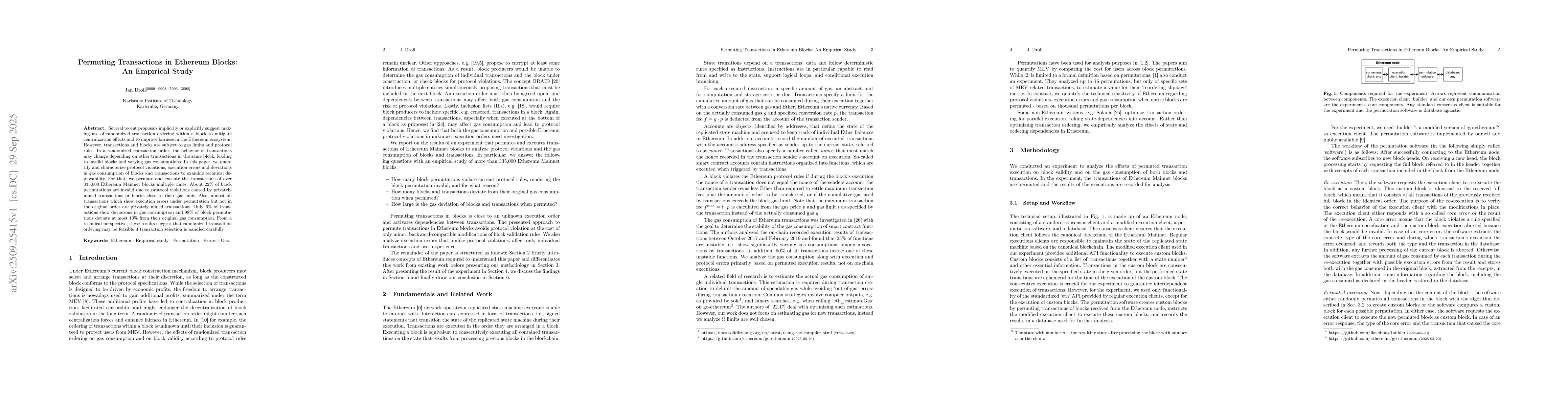 First large-scale empirical analysis of transaction permutation effects on Ethereum, combining both block and transaction-level gas consumption analysis with execution error tracking.