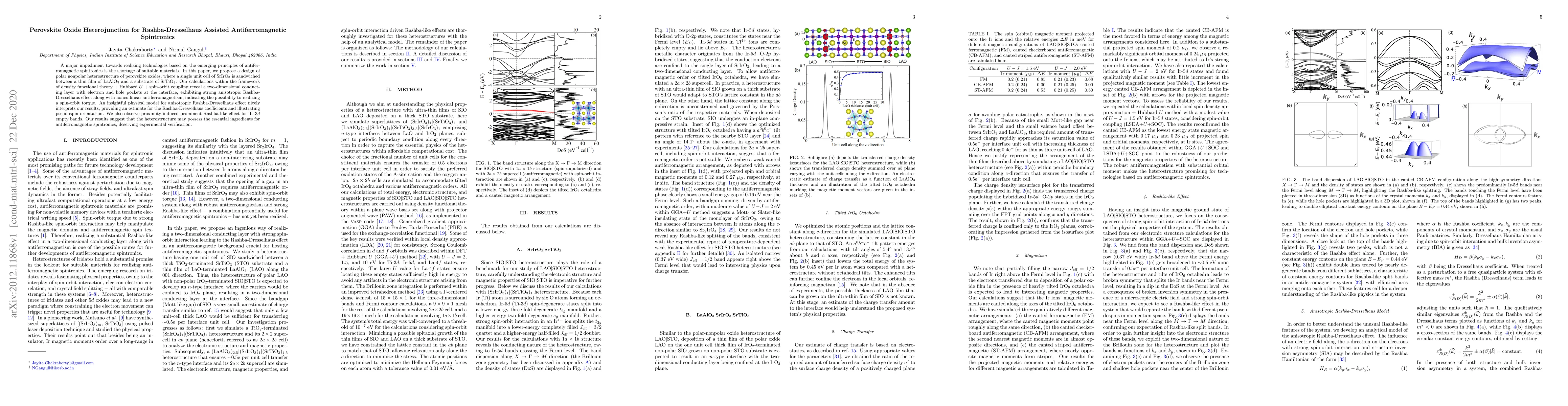 This paper proposes a perovskite oxide heterostructure combining SrIrO3, LaAlO3, and SrTiO3, revealing a two-dimensional conducting layer with strong anisotropic Rashba-Dresselhaus effects and noncollinear antiferromagnetism, suggesting potential for antiferromagnetic spintronics. The study uses density-functional theory to provide insights into the material's properties and proposes a model for the observed effects.