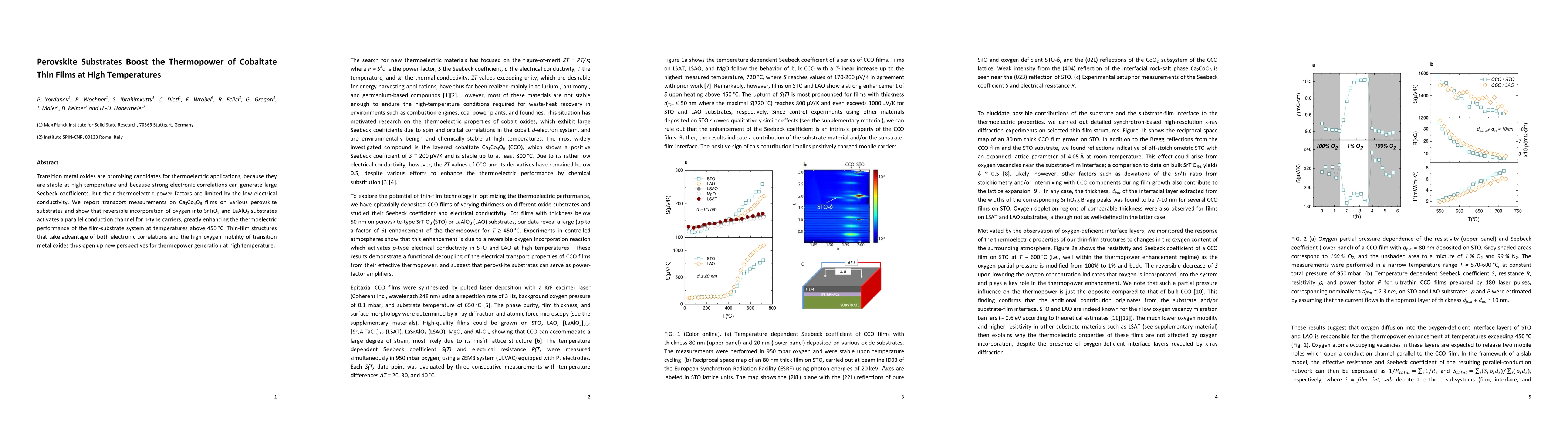 The paper presents a novel approach to enhancing thermoelectric performance in cobaltate thin films by utilizing perovskite substrates for oxygen incorporation, creating parallel conduction channels for p-type carriers.