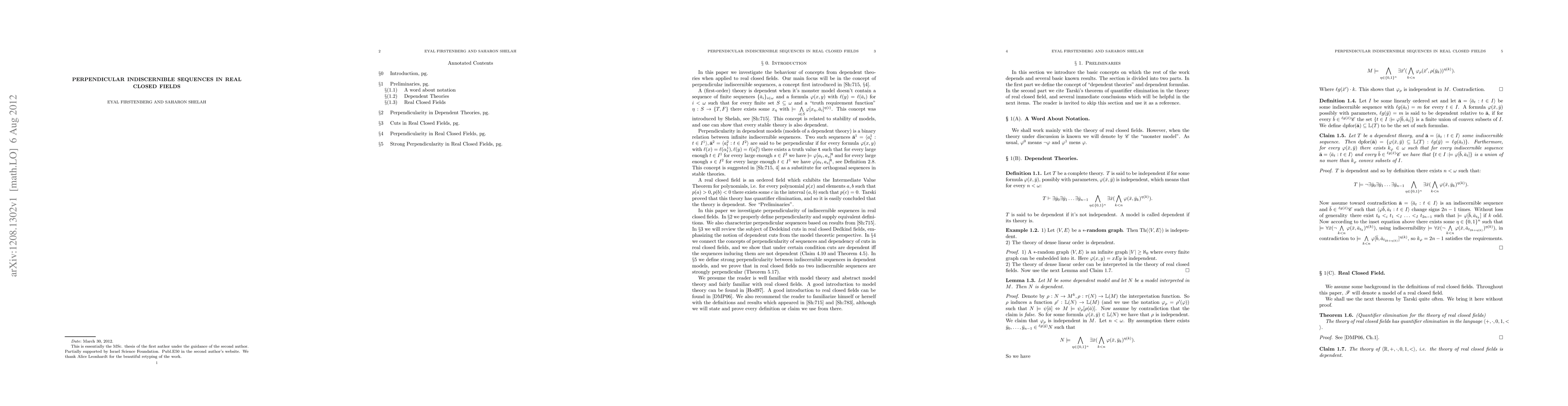 This paper explores the application of perpendicular indiscernible sequences in real closed fields, a concept originating from dependent theories, and is based on the first author's MSc. thesis supervised by the second author. The study aims to understand the behavior of these sequences within the framework of real closed fields.